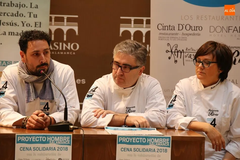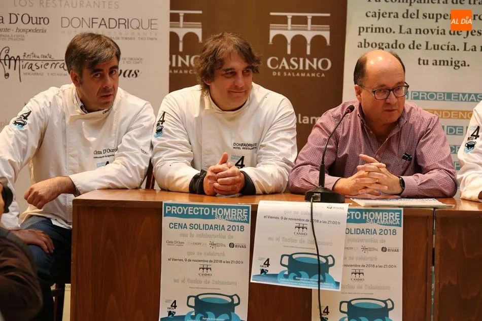 Se trata de los restaurantes Rivas, Don Fadrique, Mirasierra y Cinta D?Ouro, situado en La Raya, cuyos responsables han acompañado hoy a Manuel Muiños, presidente de Proyecto Hombre Salamanca, en la presentación de la cena benéfica que servirá para financiar los gastos de mantenimiento de los tres centros en los que se atiende a un centenar de personas que intenta salir de sus adicciones.