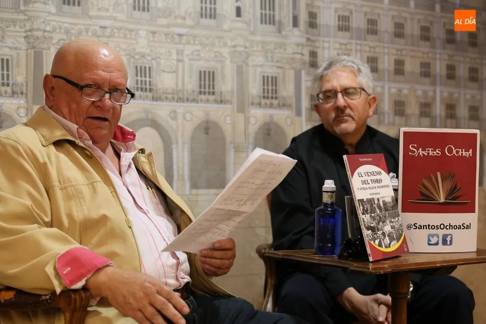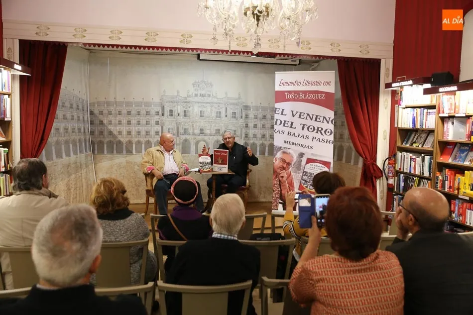La librería Santos Ochoa ha servido como escenario durante la tarde de este miércoles, en la presentación de la nueva obra de Toño Blázquez, ?El veneno del toro y otras bajas pasiones?. En la jornada, el autor estuvo acompañado de Fermín González, y ofreció al público asistente una velada en la que explicó las claves de su relato.