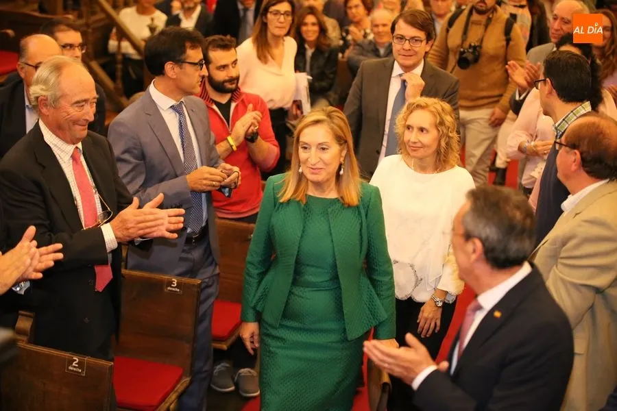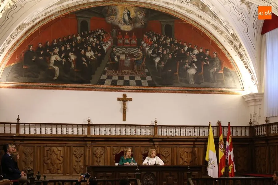 Acompañada de la rectora de la UPSA, Mirian Cortés, y con la presencia del alcalde de la ciudad, Alfonso Fernández Mañueco y el presidente de la Diputación, Javier Iglesias, la presidenta de la Cámara Baja ha insistido en la necesidad de consenso y diálogo para modificar una Carta Magna que por está consolidada ?resulta más fácil ponerse de acuerdo?.