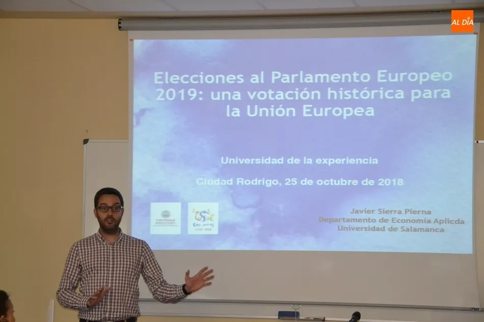 La sesión, organizada por el Centro Europe Direct de Salamanca ?que depende de la Universidad-, tenía como finalidad hablar de las Elecciones Europeas que tendrán lugar en mayo de 2019, pero antes de llegar a ese punto se enumeraron los órganos e instituciones de la Unión Europea, deteniéndose el ponente en cómo funciona el Parlamento Europeo, con sus 751 eurodiputados de 28 países con 24 idiomas diferentes.