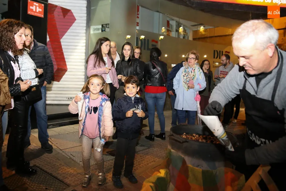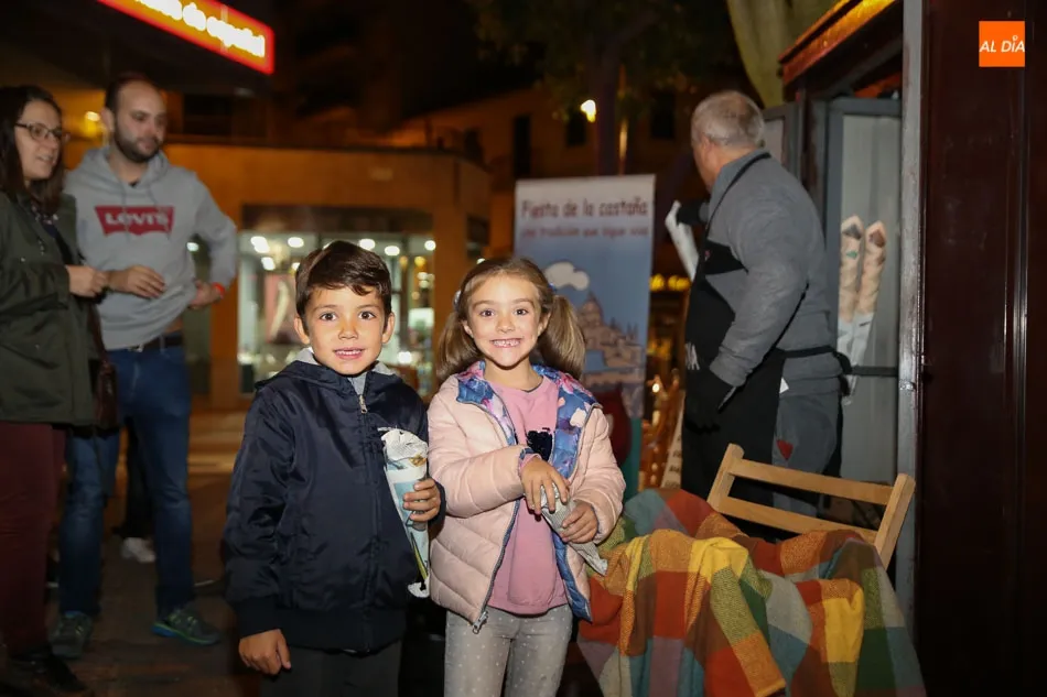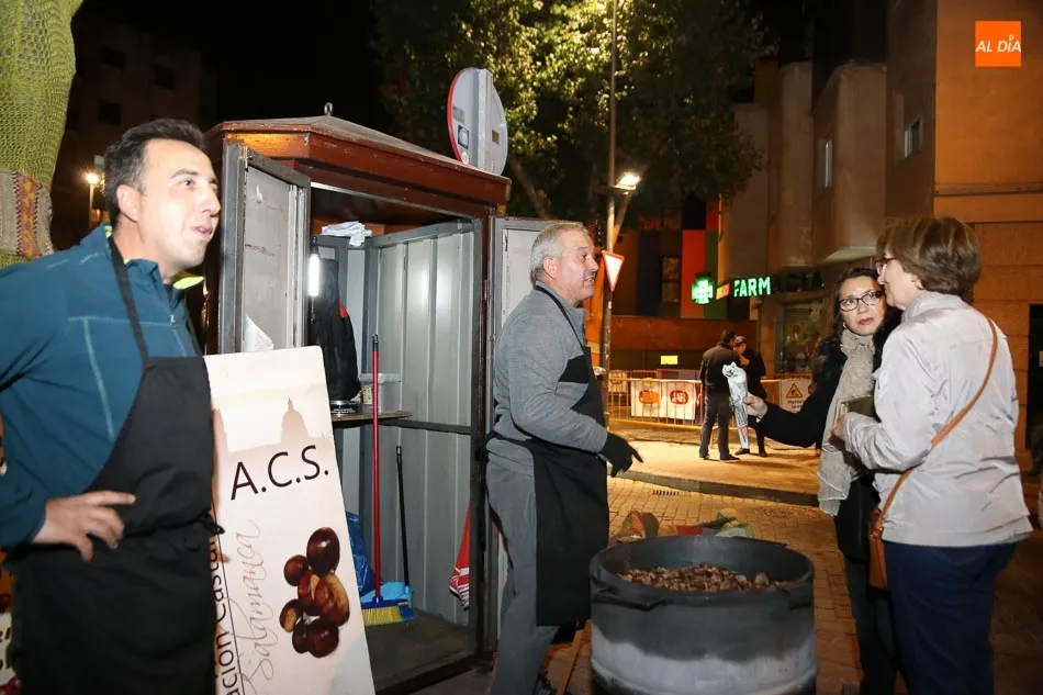 El puesto de castañas de la Plaza del Oeste inauguraba esta tarde la temporada del fruto invernal bajo la organización de la Asociación de Castañeros de Salamanca que ha conferido a la nueva temporada un ambiente festivo al sol del tamboril, con un photocalla y una degustación de castañas asadas para los vecinos que quisieron acercarse hasta el puesto. Y es que las castañas son, sin duda, un entretenimiento y la mejor forma de combatir las tardes de frío invernal en Salamanca, además de una estampa ya clásica de la ciudad con sus puestos a lo largo del casco urbano.
