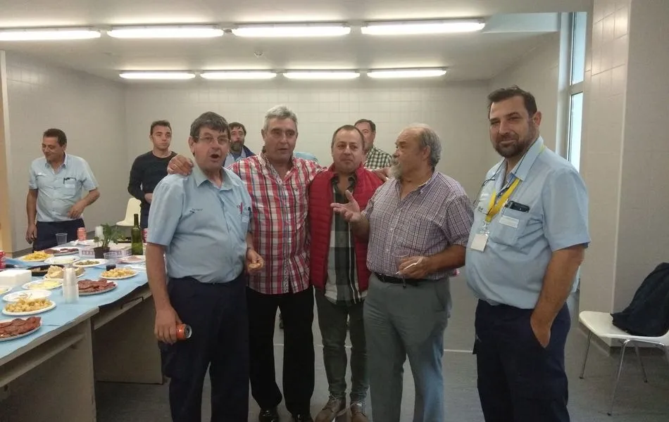Maxi Rodríguez celebra su jubilación con sus compañeros de mantenimiento en el Hospital
