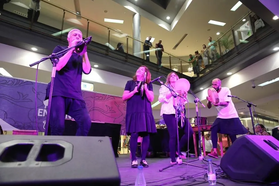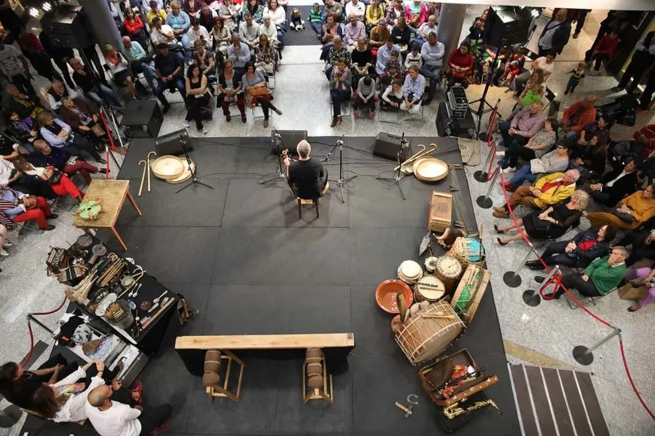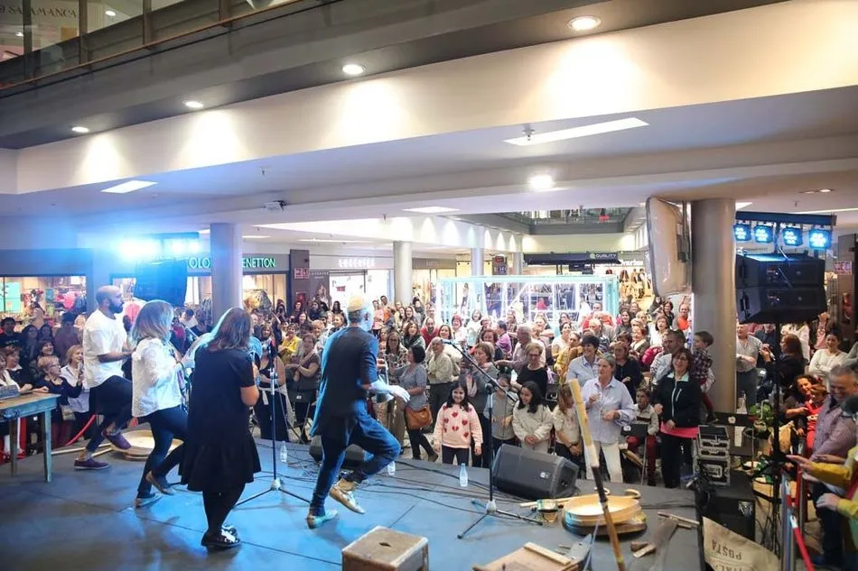 El grupo salmantino llevó sus ritmos con objetos cotidianos a un expectante público dentro de los Encuentros con la Tradición del centro comercial