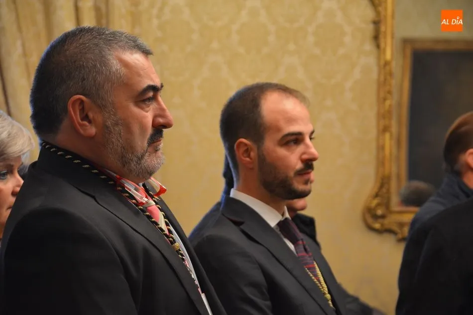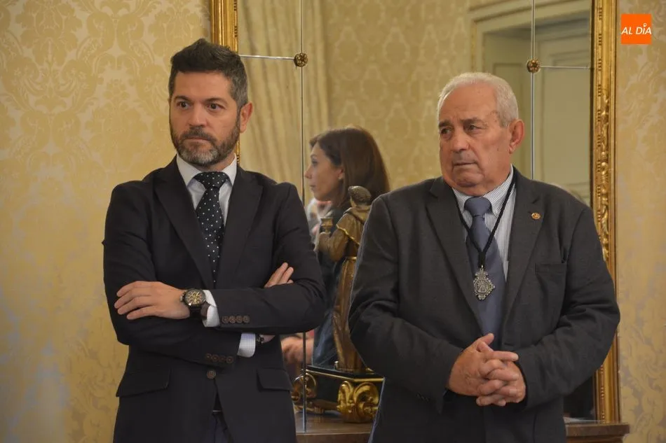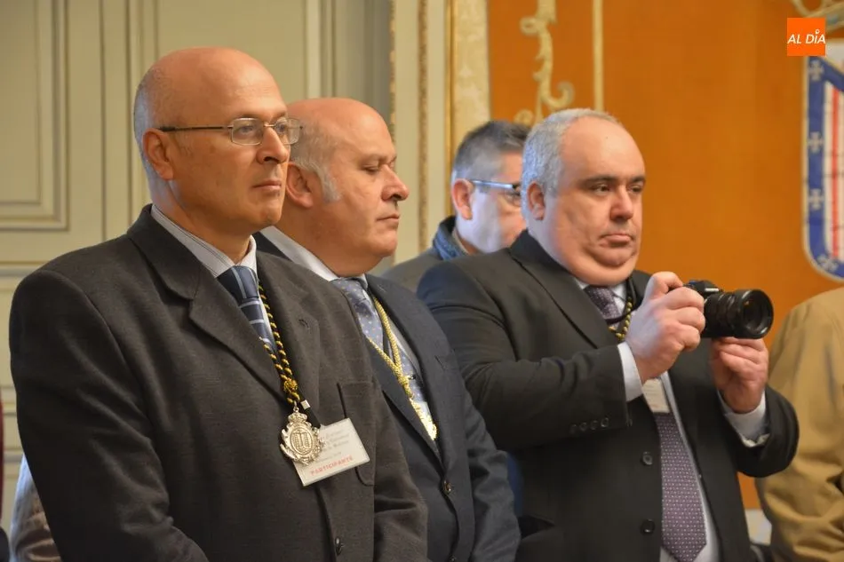 La Hermandad de la Soledad de Salamanca ha entregado la Medalla de Oro al Ayuntamiento de Salamanca en un acto que ha contado con la presencia del primer teniente de alcalde, Carlos García Carbayo, y el concejal de Cultura, Julio López Revuelta. Ambos concejales han recibido a los participantes en la 45 Convivencia Nacional de Hermandades y Cofradías de Nuestra Señora, en una recepción que ha contado con la intervención de Rafael Ruibérriz, presidente nacional de las cofradías de España y el Hermano Mayor de La Soledad de Salamanca, Miguel Hernández Rubio.