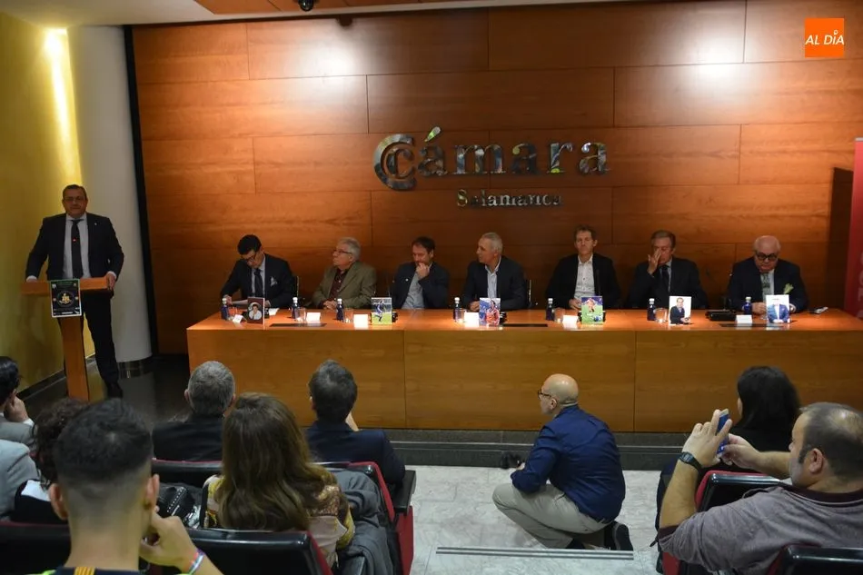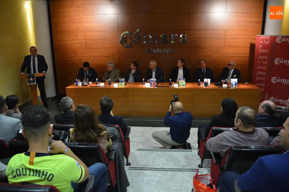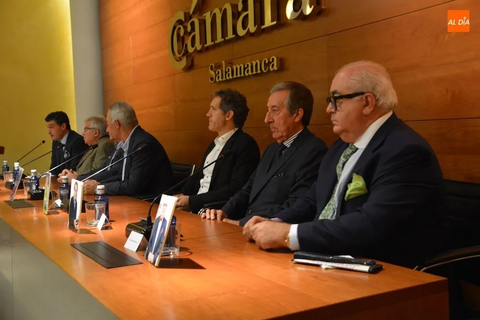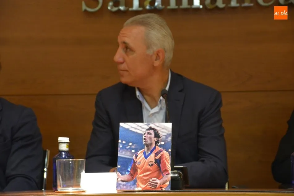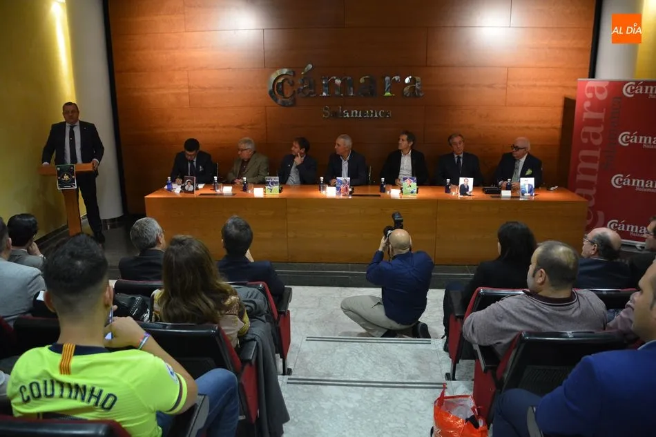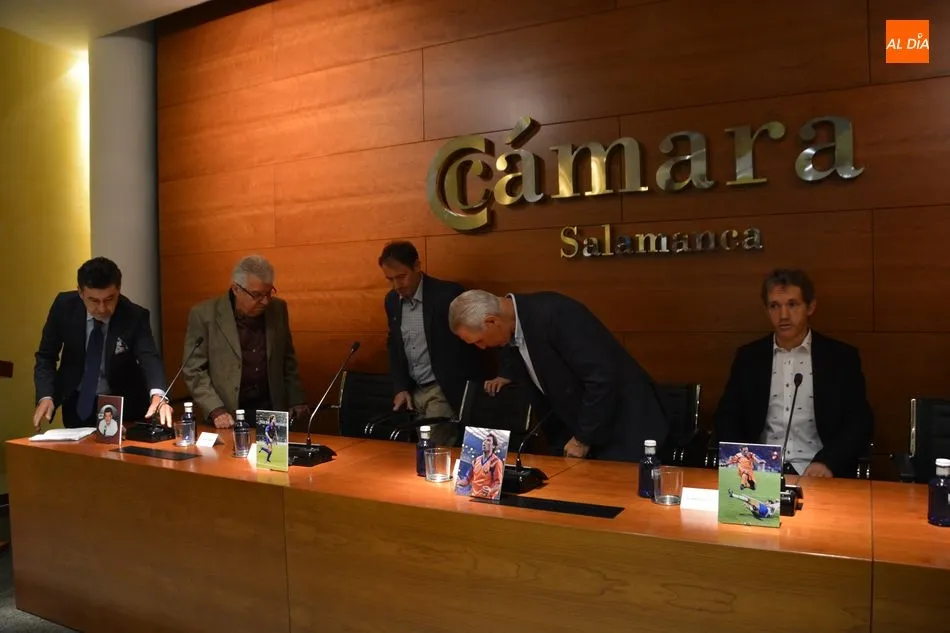 El Salón de Conferencias de la Cámara de Comercio se vestía esta mañana de azulgrana con motivo del encuentro de peñas del FC Barcelona en Castilla y León que tuvo la conferencia de varios barcelonistas, héroes de Wembley -donde el Barça ganó su primera Champions- y piezas claves del Dream Team azulgrana que, a las órdenes del recordado Johan Cruyff cambió el rumbo de la historia del club catalán tanto sobre el césped como fuera de él. El búlgaro Hristo Stoichkov, Jon Andoni Goikoetxea y Juan Carlos Rodríguez fueron los grandes protagonistas del coloquio en la que también participaron otras personalidades como el periodista Alfredo Martín, Joan Carles Font o el agente José María Minguella. Todos ellos contaron numerosas anécdotas de aquella época que hicieron las delicias de los entregados barcelonistas y también repasaron la más rabiosa actualidad justo en vísperas de un nuevo clásico.