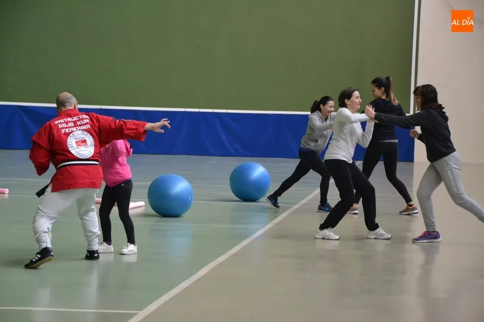 A lo largo de la mañana del sábado se desarrolló en el frontón cubierto del Pabellón Eladio Jiménez la primera de las tres sesiones de autoprotección y defensa personal para mujeres que han promovido para este curso 2018/2019 las concejalías de Deportes e Igualdad del Ayuntamiento de Ciudad Rodrigo.