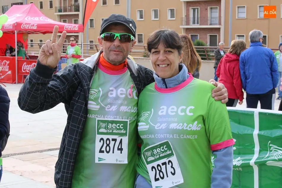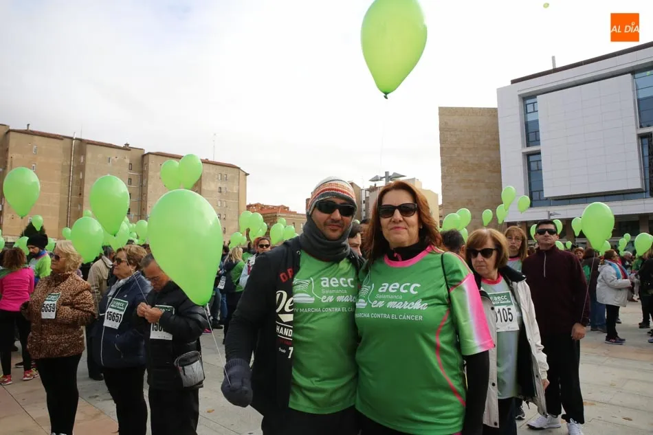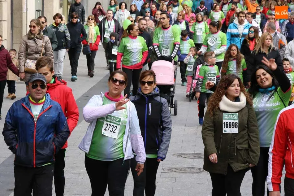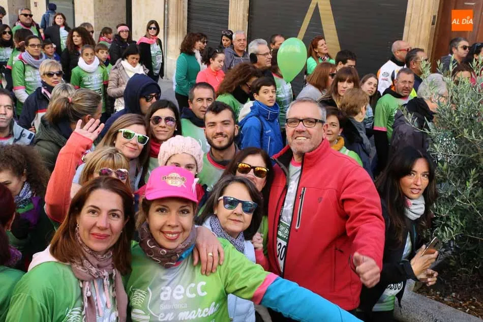 Récord de participación en la V Marcha Contra el Cáncer ?AECC Salamanca en marcha? con 18.000 participantes. Con un recorrido de seis kilómetros que ha partido y ha finalizado en la Plaza de la Concordia, miles de personas -familias enteras, grupos de amigos, alumnos de diferentes colegios de la ciudad y la provincia- han participado en una marcha solidaria, no competitiva, con el mejor de los fines: destinar el dinero recaudado por la venta de los dorsales -cinco euros- a la investigación.