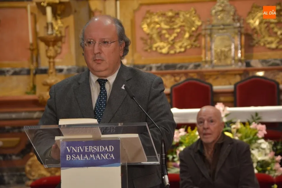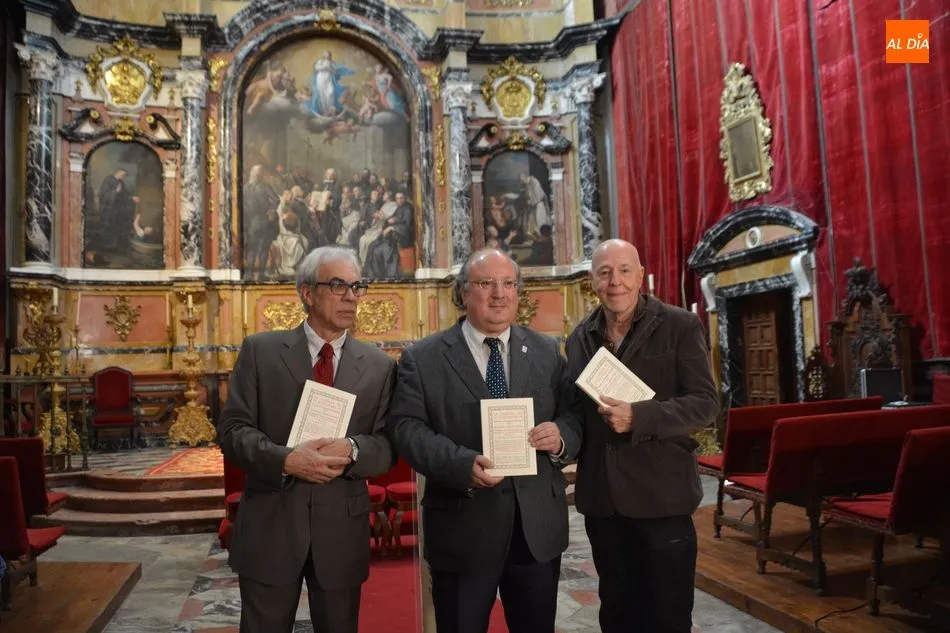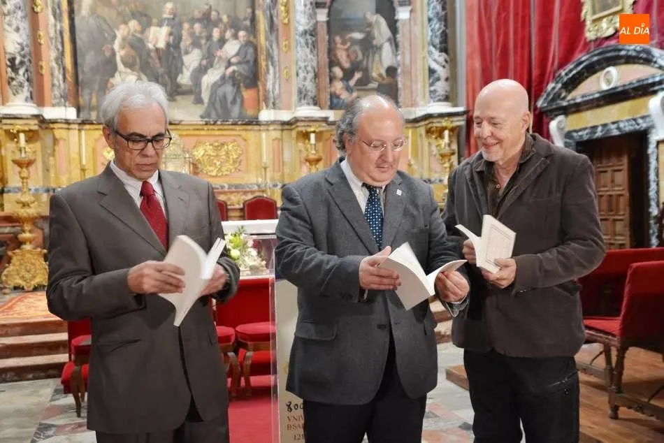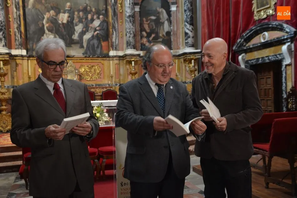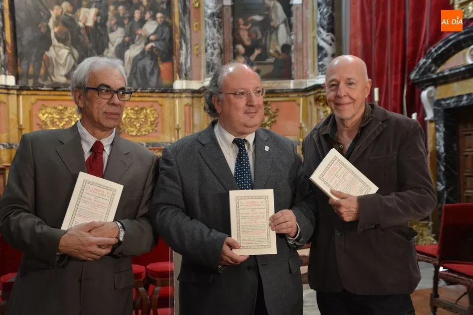 A esta presentación, en la Capilla del Edificio Histórico de la Universidad, asistían Enrique Cabero, el vicerrector de Política Académica y Participación Social; Fernando Rodríguez de la Flor, catedrático de Literatura Española de la Universidad de Salamanca; y José Antonio Sánchez Paso, técnico de la Oficina del VIII Centenario.