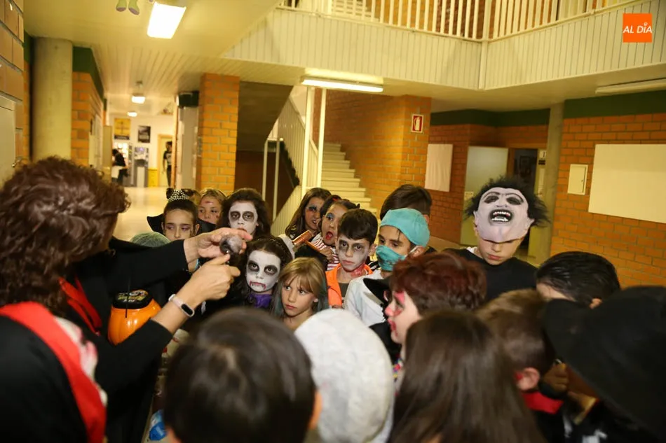 Los alumnos del Colegio Antonio Machado han participado esta tarde en una gran fiesta de Halloween organizada por primera vez por la Asociación de Madres y Padres. La celebración ha incluido un desfile de disfraces por niveles educativos, juegos con globos, un Escape Room, actividades en las que los escolares han estado acompañados por sus profesores y familiares.