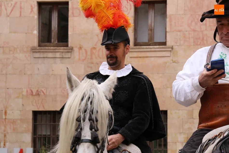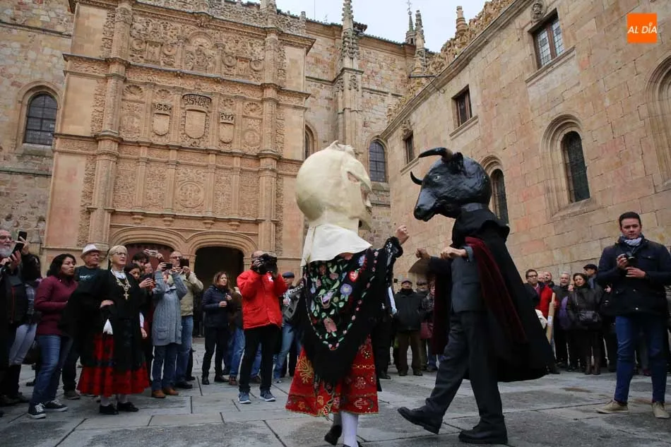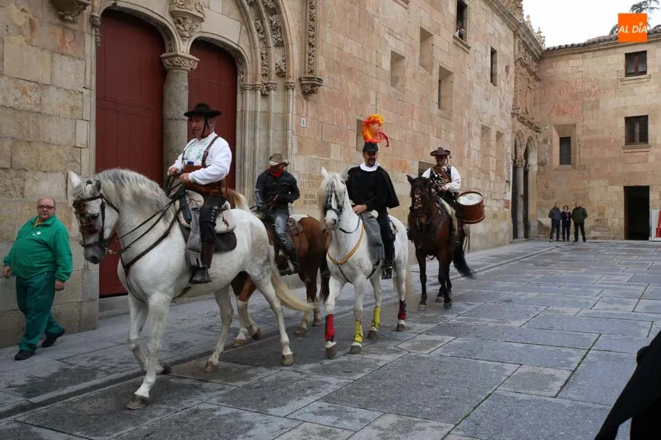 La comitiva de El Mariquelo ha partido desde las 09.30 horas del Puente Romano y, tras adentrarse por las calles Tentenecio, Veracruz y Libreros, llegó al Patio de Escuelas para protagonizar este espectáculo frente a la fachada Rica de la Universidad.