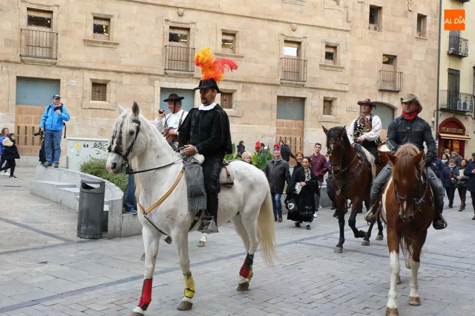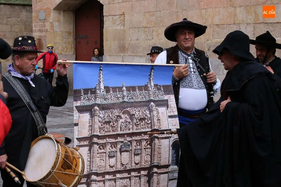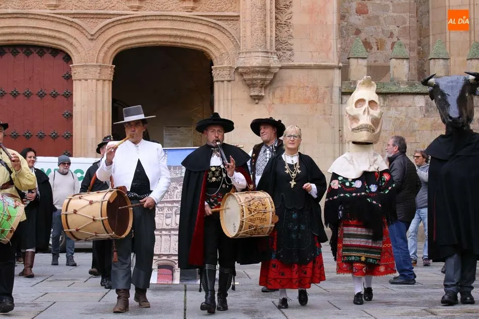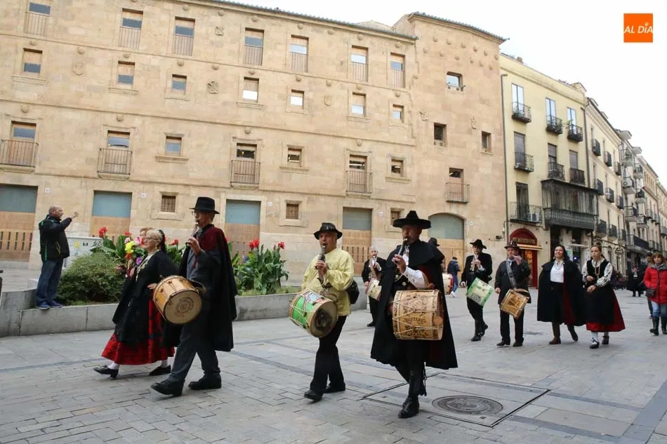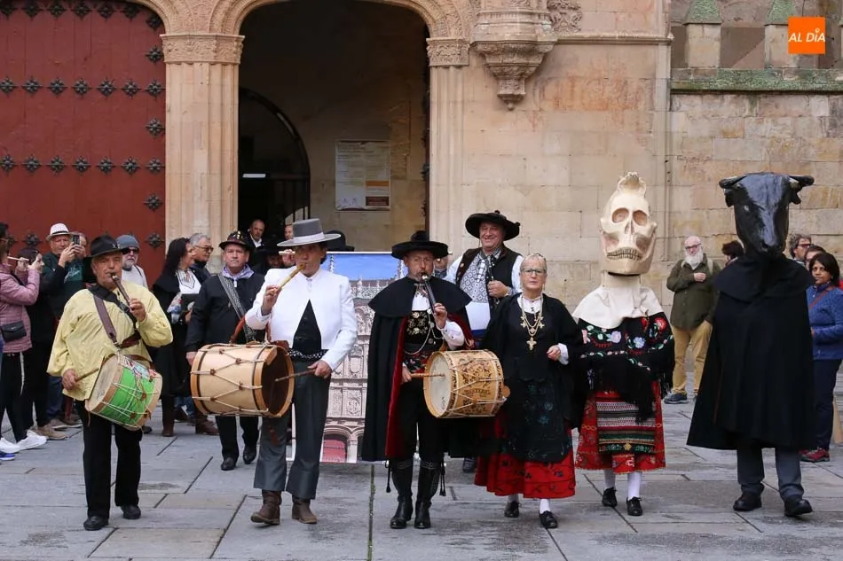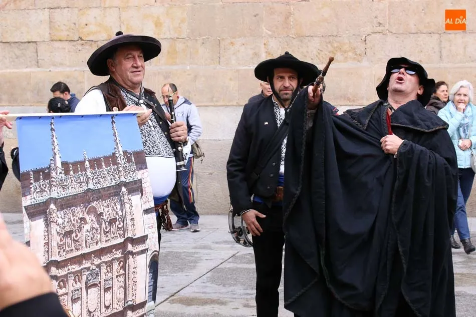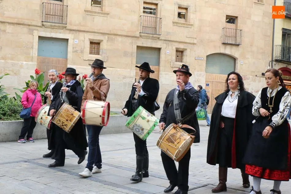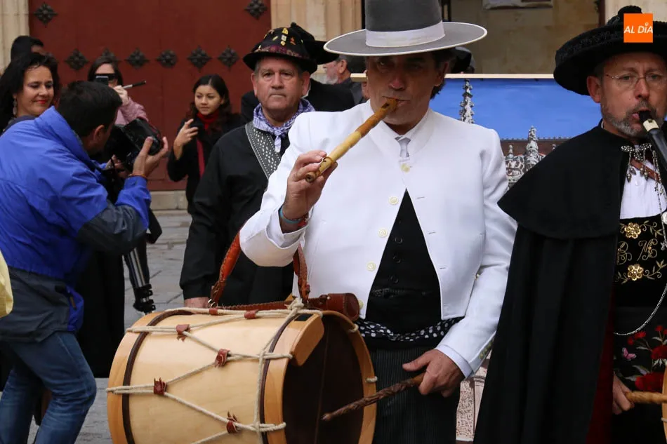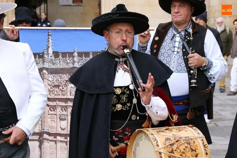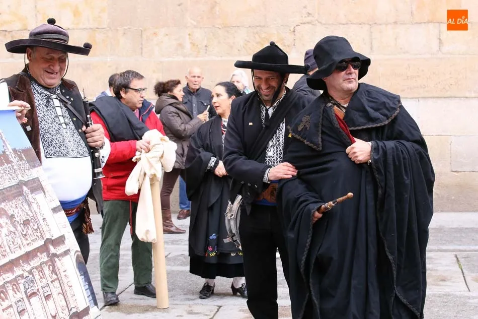Una vez finalizado, la comitiva del folclorista continuó su recorrido por las calles Libreros, Meléndez, Corrillo y Rúa Mayor antes de llegar al pie de la Catedral