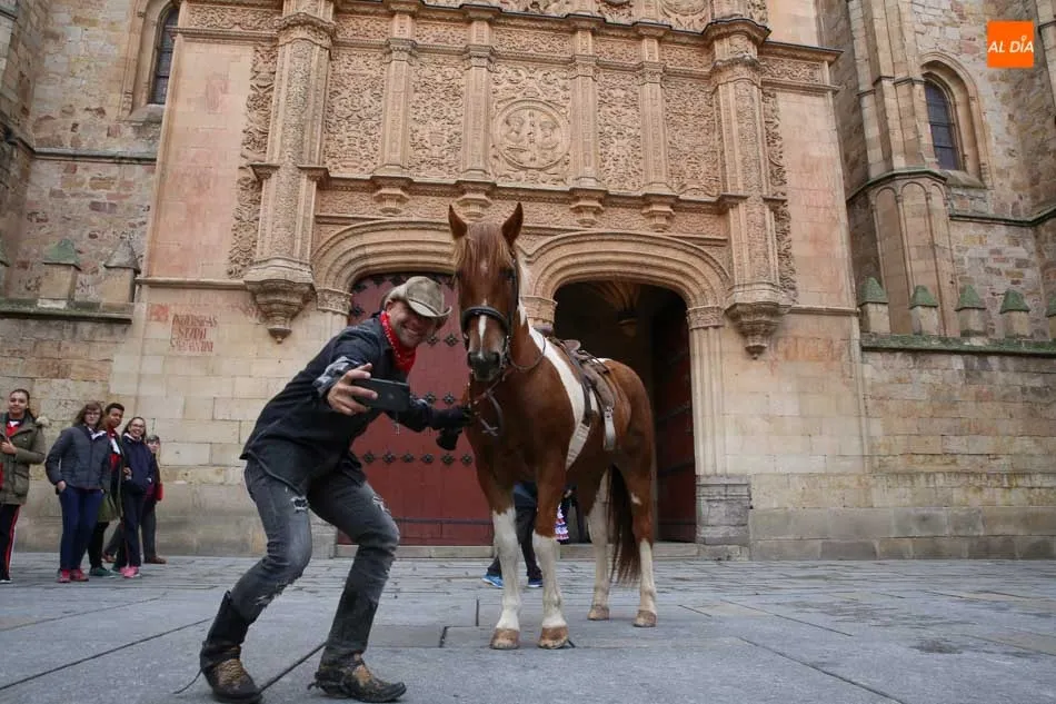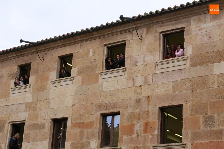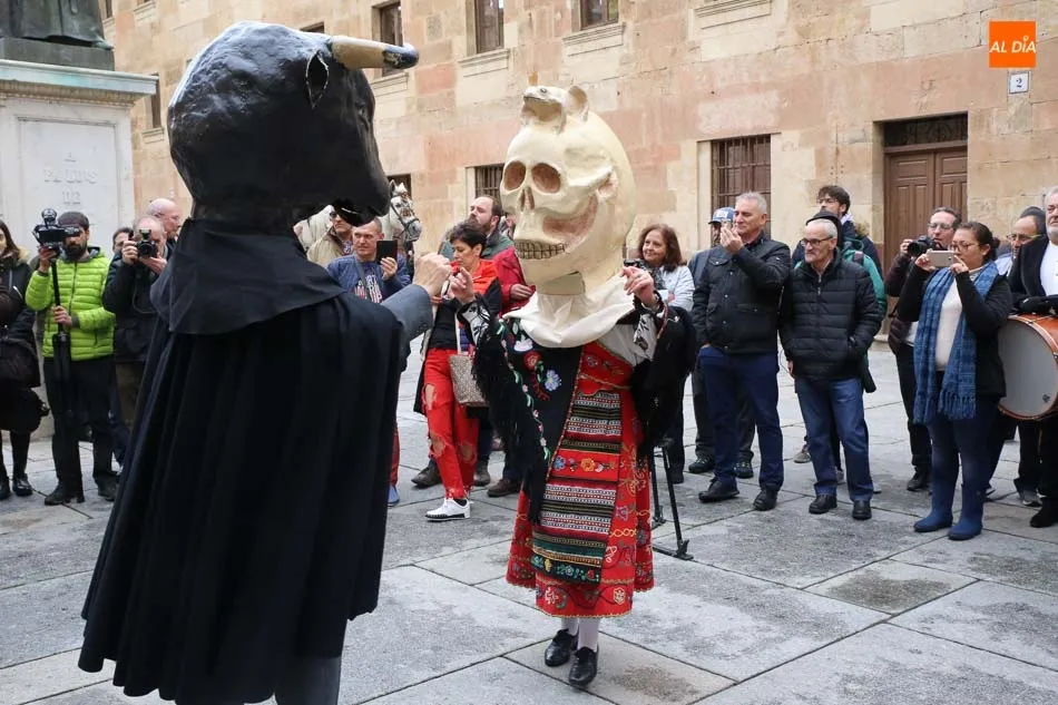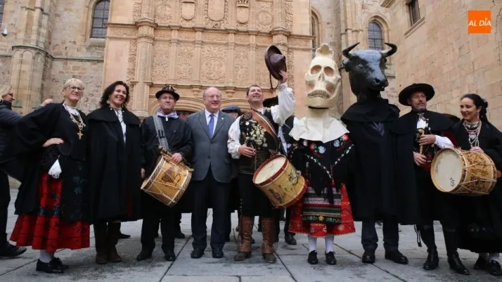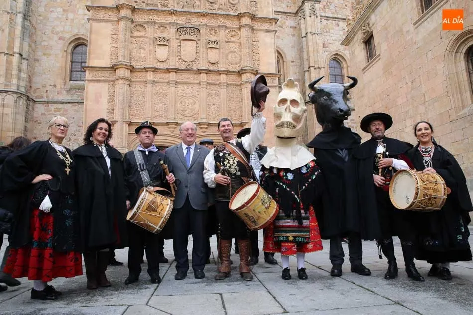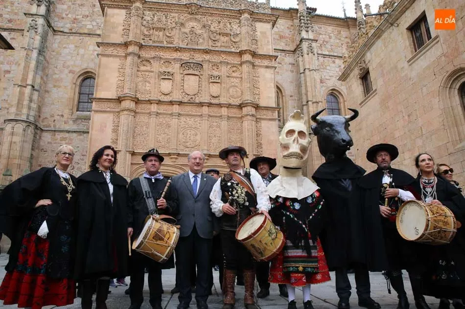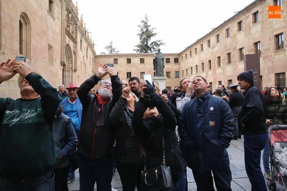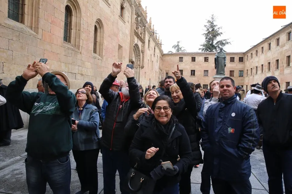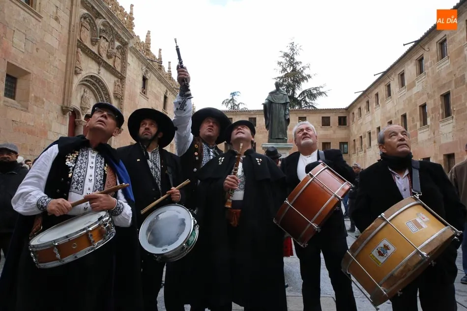 Una vez finalizado, la comitiva del folclorista continuaó su recorrido por las calles Libreros, Meléndez, Corrillo y Rúa Mayor antes de llegar al pie de la Catedral e iniciar la ascensión con la que se perpetúa la tradición de comprobar el estado de la seo salmantina tras el terremoto de Lisboa de 1755.
