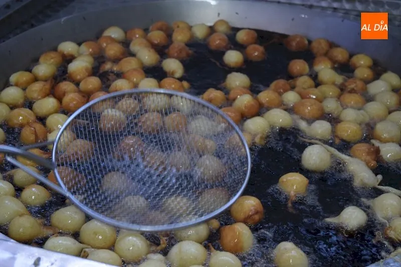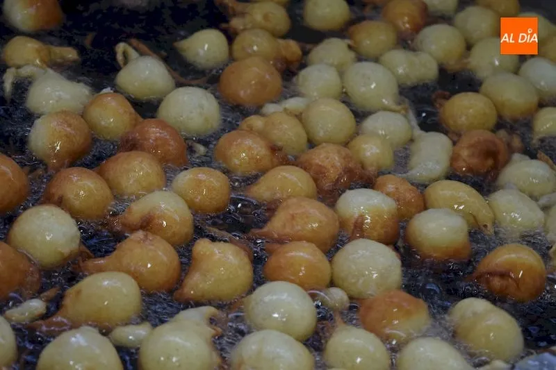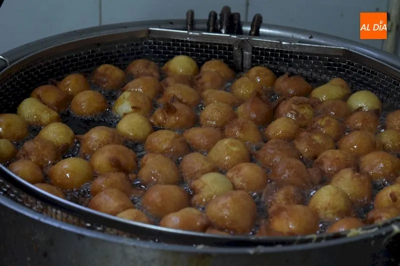 Gran variedades de buñuelos se elaboran estos días en el obrador de la pastelería 'La Madrileña'. A los tradicionales de crema y nata se les unen otros de sabores como chocolate, trufa de nata, trufa de leche, cabello de angel y café. Su masa que se introduce en pequeñas porciones en aceite a alta temperatura va adquiriendo volumen poco a poco para posteriormente ser rellenada del ingrediente elegido.