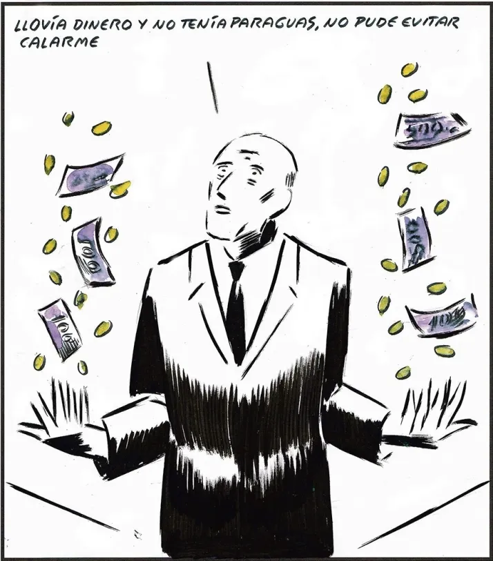 ¿Quiero ser político?..- Digo a viva voz dando un puñetazo en la mesa-, y exclamo: -¿Podéis decirme que tiene que ver la vergüenza, la decencia, la honestidad, el pudor, los buenos sentimientos con la política? ¿Quieren explicarme y dejarse de decir ?milongas?? Cuando entras a una zapatería no es para comprarte un traje sino un par de zapatos, ¿no?. Bueno, cuando vas de político no es a comprar decencia, ni honestidad ni ninguna de esas tontunas...Soy muy sincero, vive Dios, yo no pido fruslerías. Pido robar, robar honradamente como cualquier hijo de vecino. ¿Es eso pecado?. No? Sólo me falta una gran mentira con que mover la masa ciudadana. El que la encuentre, créalo, el que encuentre la gran mentira podrá llegar hasta ser Presidente del país? Estén muy atentos.