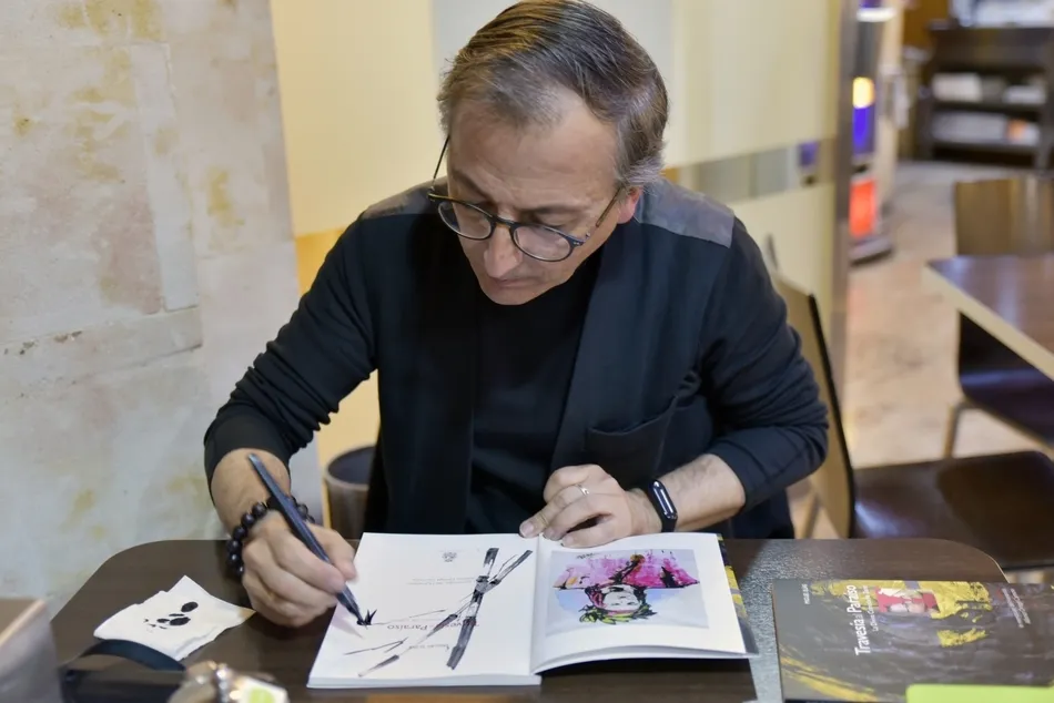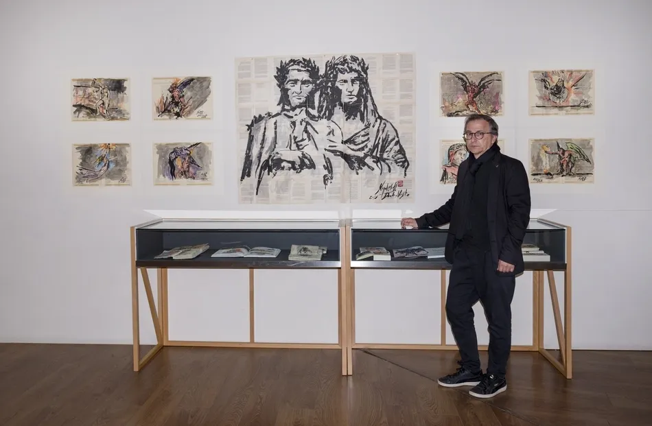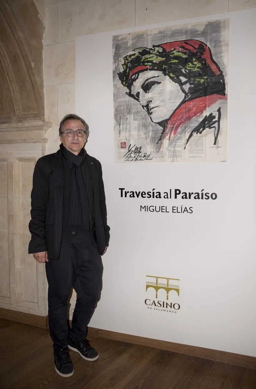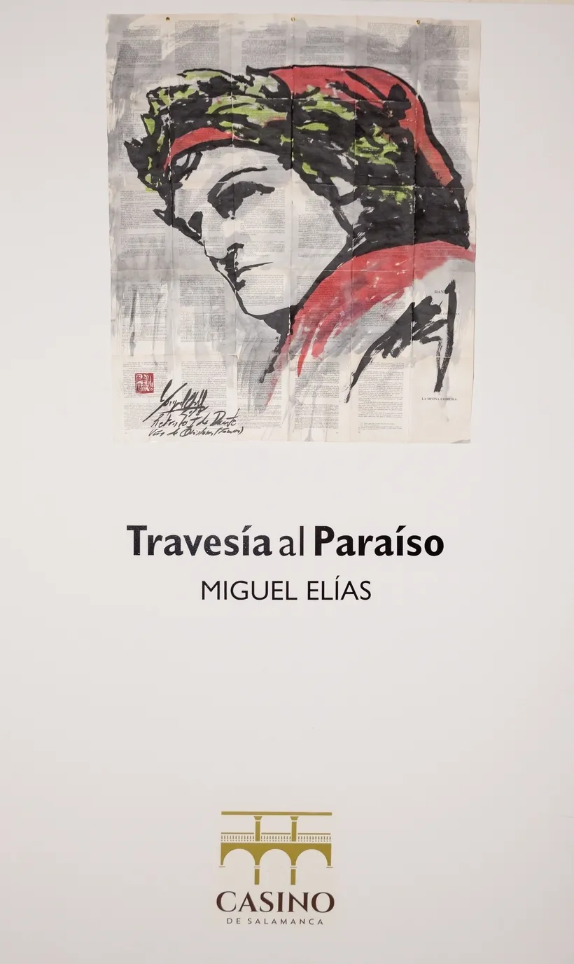 Miguel Elías, trazos que son versos   | Imagen 1Miguel Elías: La muestra se llama ?Travesía al paraíso? y es un viaje, como un viaje fue La divina comedia, de Dante. Un viaje pictórico que ha durado tres años. He tardado tres años en culminar este proyecto y siento que La divina comedia es de una actualidad de la leche, todo lo podemos aplicar a la actualidad: los políticos corruptos, la gula por el lujo, el afán del dinero? Dante hacía unos juicios muy democráticos, ese creo que es el poder de la cultura.