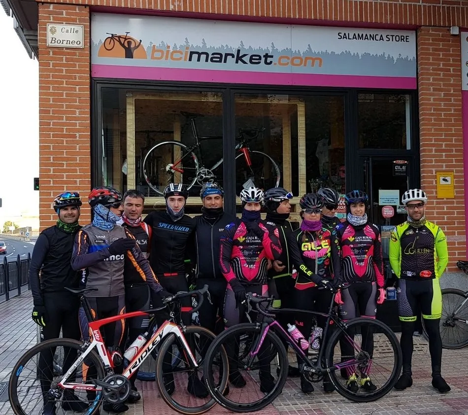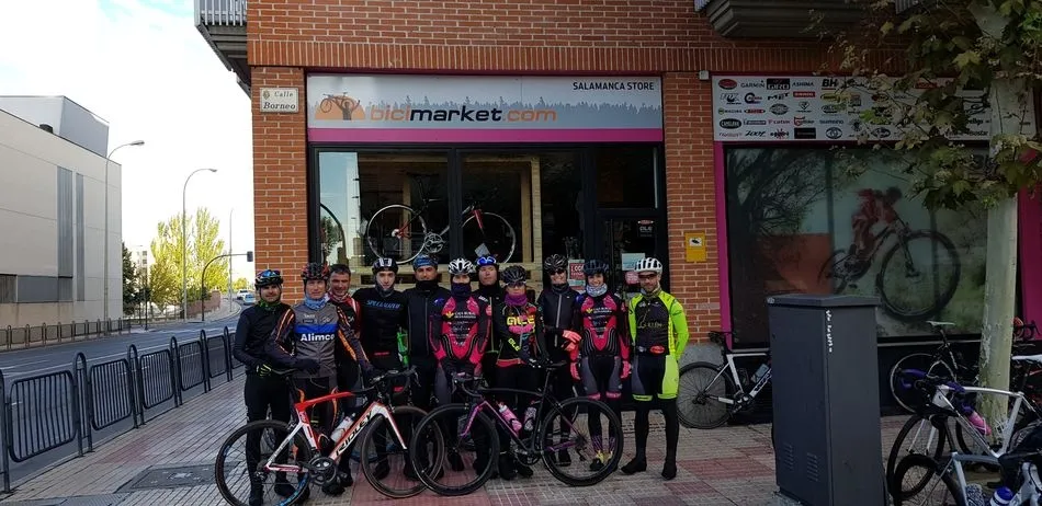 Moisés Dueñas, Santi Blanco y Lale Cubino han iniciado en la mañana de hoy el Camino de Santiago de la Plata, partiendo desde Bicimarket Salamanca Store, uno de los impulsores de esta iniciativa.