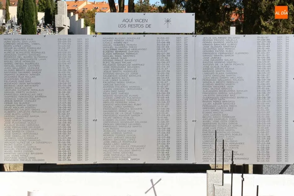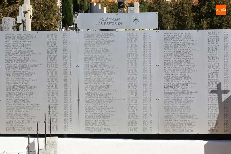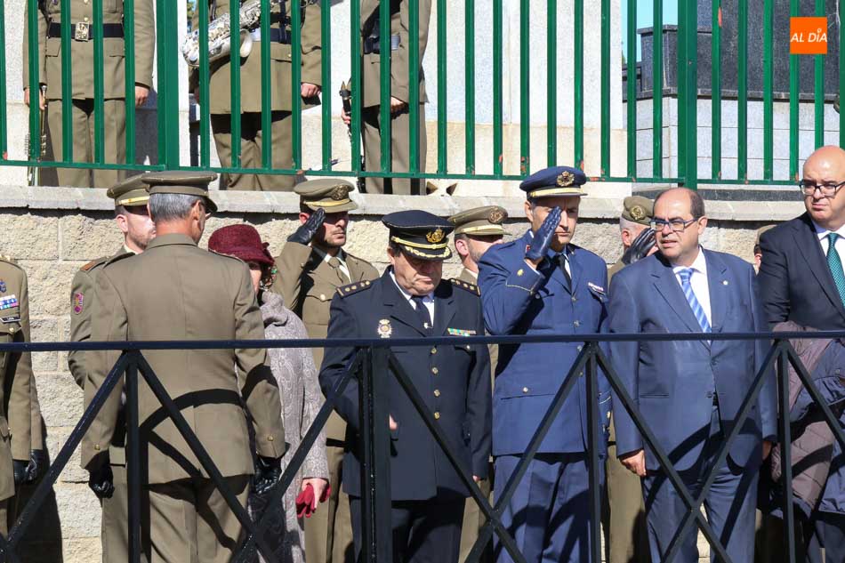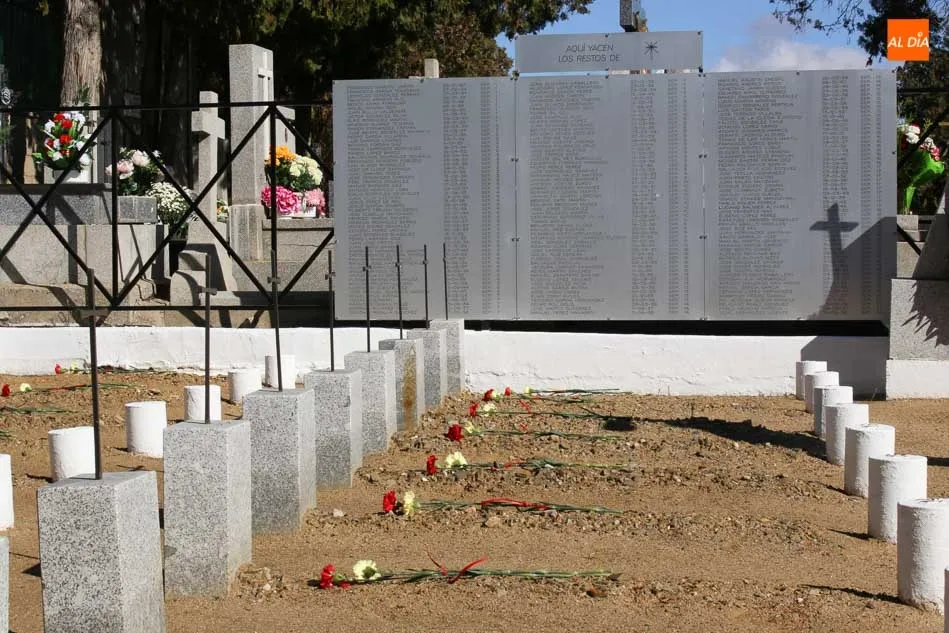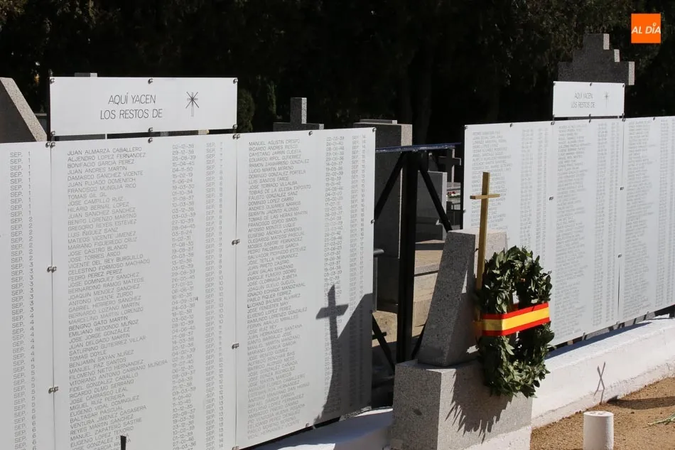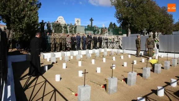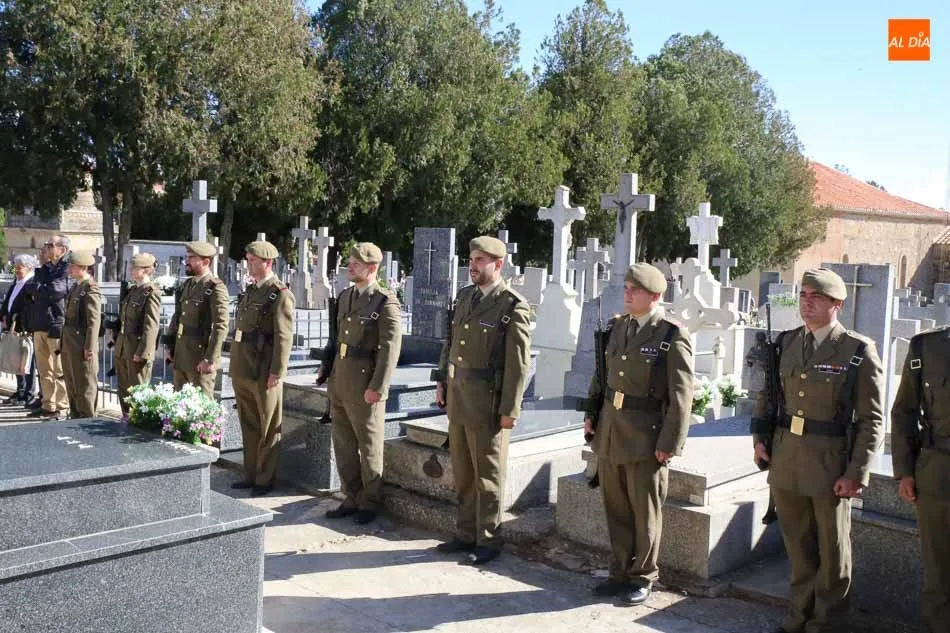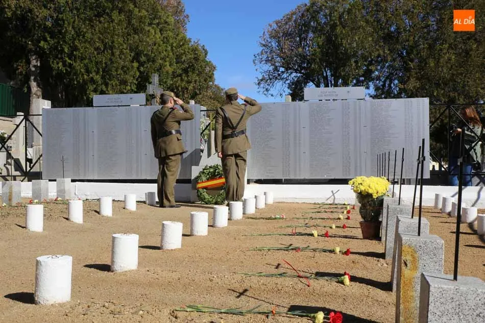 En el panteón militar reposan los restos de soldados de diferentes épocas, algunos de la Guerra Civil, pero también de conflictos anteriores fechados en 1917, 1910 o 1909, cuyos nombres, de los que están identificados, se recuerdan en una placa. En algunos casos, las tumbas son compartidas y no hay constancia exacta de quienes las ocupan, puesto que en algunos casos no se enterraron los cuerpos enteros. Tras la ofrenda floral, la comitiva visitó la tumba donde reposan los restos de Gaspar de Diruel, teniente general y coronel de ingenieros fallecido en Salamanca en 1854.