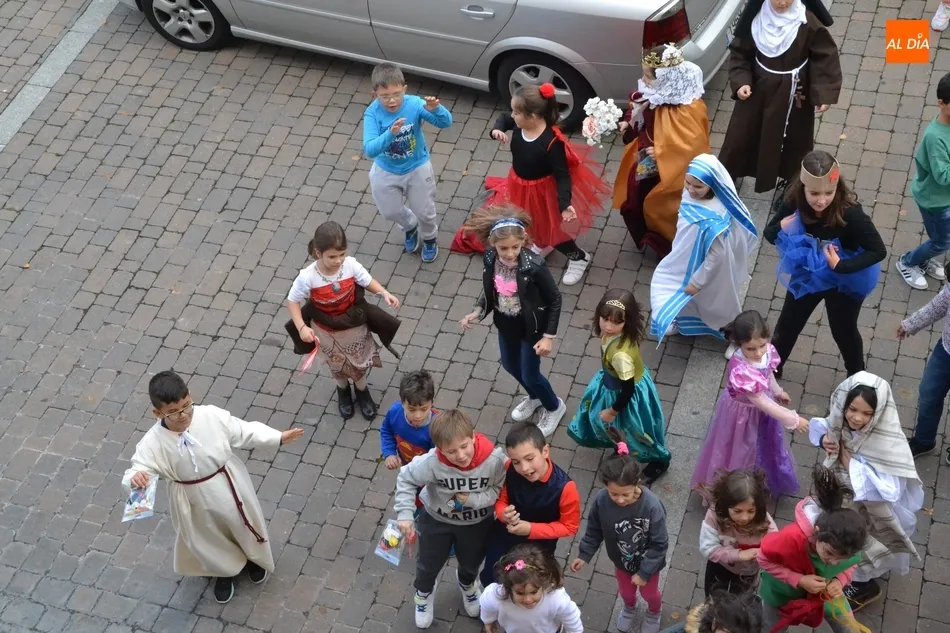 Como en años anteriores, se invitó a todos los niños a acudir disfrazados, entremezclándose los disfraces religiosos, principalmente de ángeles y santas (como Teresa de Calcuta), con los de superhéroes (se pudieron ver disfraces de Superman, Spiderman, las Tortugas Ninja o Rayo McQueen). En lo que respecta a los monitores, la mayoría sí que estuvo disfrazado, destacando por ejemplo uno de San Lorenzo con parrilla incluida.