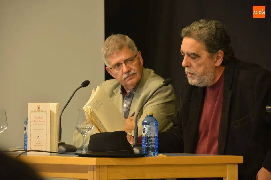 La Feria del Libro Antiguo y de Ocasión, que concluye este domingo en la Plaza Mayor, acogía esta mañana la presentación de ?Nuevos Ramos de Viejos Cantares y otras coplas de varia intención?. Una obra de Ramón García Mateos, al que acompañaron Juan Francisco Blanco, director del Instituto de las Identidades de la Diputación de Salamanca; así como Alberto Jambrina, Pablo Madrid y José Luis Gutiérrez Guti, intérpretes que participan en el disco que acompaña al libro y que interpretaron algunos temas.