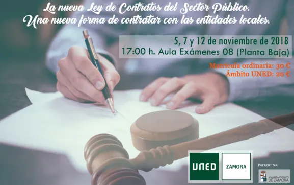 La Universidad Nacional de Educación a Distancia impartirá la próxima semana en su Centro Asociado de Zamora un curso sobre la nueva Ley de Contratos del Sector Público, que se podrá seguir por videoconferencia desde la Aula de la UNED de Ciudad Rodrigo (en el Edificio Educativo Municipal de la calle San Fernando).