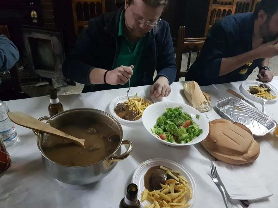 El primer sábado del mes de noviembre ha caído en pleno Puente de Todos los Santos pero eso no ha sido excusa para la Peña Los 7 del Invierno para dejar de reunirse en su tradicional comida del primer sábado de cada mes entre septiembre y junio. En esta ocasión, el encargado de preparar la comida fue José (Tareka), que elaboró unas carrilleras ibéricas acompañadas de una salsa ?espectacular?, según aseguran sus compañeros.
