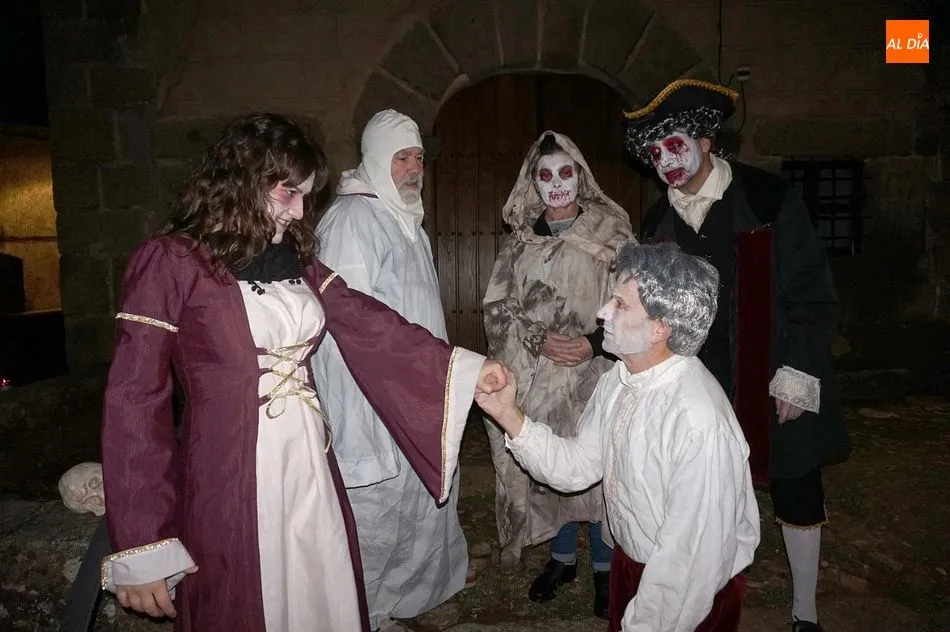 Villanueva del Conde se ha vestido de Halloween en la tarde de ayer para celebrar una fiesta en la que no faltó chocolate, castañas asadas, diversión y muchos sustos. Al anochecer se han puesto en marcha los numerosos vecinos de la localidad, la mayor parte disfrazados, hasta la plaza de la Iglesia. Allí se han encontrado con varias micro actuaciones de calle a cargo de Cateja Teatro, todas ellas basadas en historias de terror basadas en leyendas locales.