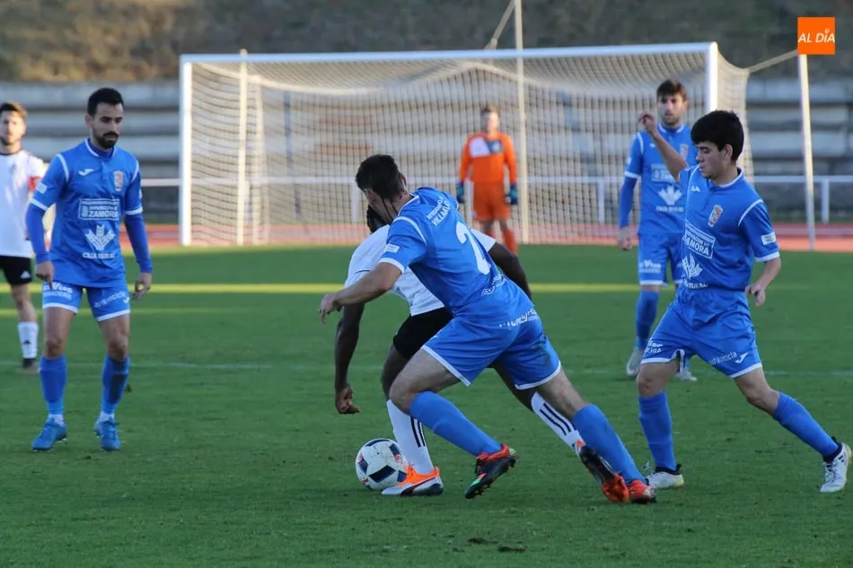 Aunque el equipo de Pablo Cortés salió a por todas de inicio, tratando de dominar a su rival, los zamoranos demostraban por qué son el único equipo invicto y lideres en solitario, ya que a su saber estar en el terreno de juego unían su contundencia en ataque. Avisaron en una contra y superados los veinte minutos llegaba el 0-1 que dejaba helados a los blanquinegros y a su parroquia, esta tarde más concurrida de lo habitual.