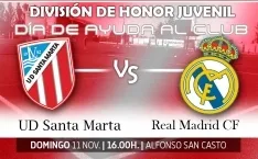 La Unión Deportiva Santa Marta ha declarado día de ayuda al club el partido ante el Real Madrid correspondiente a la undécima jornada de la División de Honor Juvenil. El encuentro se disputará en el estadio Alfonso San Casto a las 16:00 horas del próximo domingo 11 de noviembre.