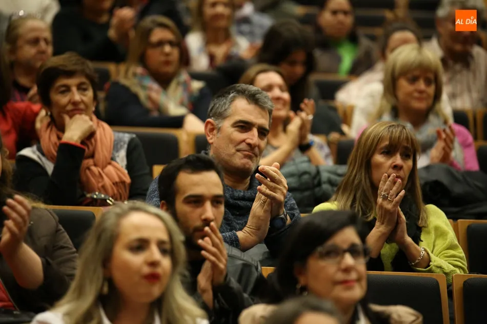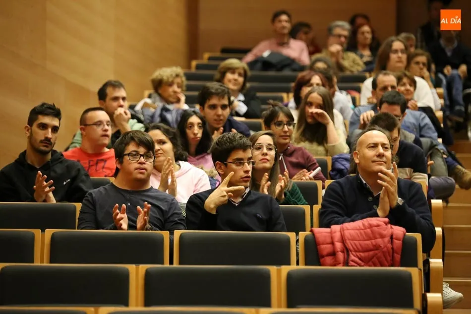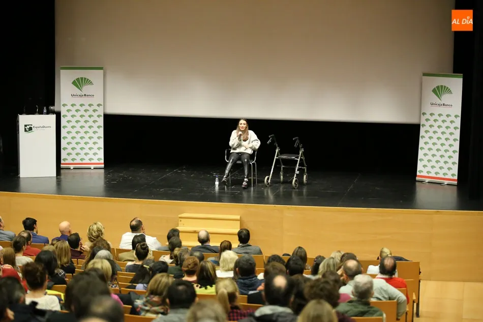 La joven adquirió notoriedad tras ganar una de las ediciones del programa televisivo ?Tú sí que vales? y compagina su faceta de conferenciante con la de cantante y actriz. Miriam Fernández ha compartido su experiencia de vida con un auditorio lleno en Salamanca, recordando que nació con una parálisis cerebral y los médicos le dijeron que nunca podría caminar. ?Fui dada en adopción a una familia y me convertí en la pequeña de siete hermanos y entre todos hacen lo imposible para que yo empiece a moverme, a aprender a caer y a levantarme. A los cuatro años di mis primeros pasos y a raíz de ahí mi familia me educa siempre en que la diferencia es bonita, pero cuando llego al cole veo que los niños no ven tan bonita esa diferencia y sufro acoso escolar?.