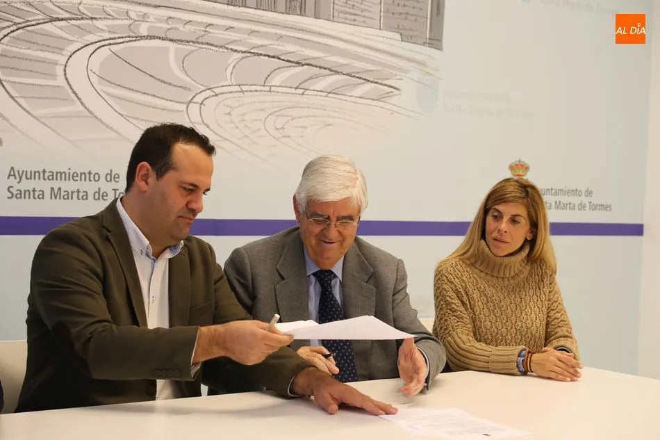 El Ayuntamiento de Santa Marta ha firmado este jueves un nuevo convenio con el Grupo Limcasa con el objetivo de generar nuevas oportunidades de empleo y favorecer la contratación de desempleados del municipio. El acuerdo ha sido rubricado por el alcalde, David Mingo, y el presidente del Grupo Limcasa, Godofredo García, en un acto en el que también ha estado presente la concejala de Empleo, Chabela de la Torre.