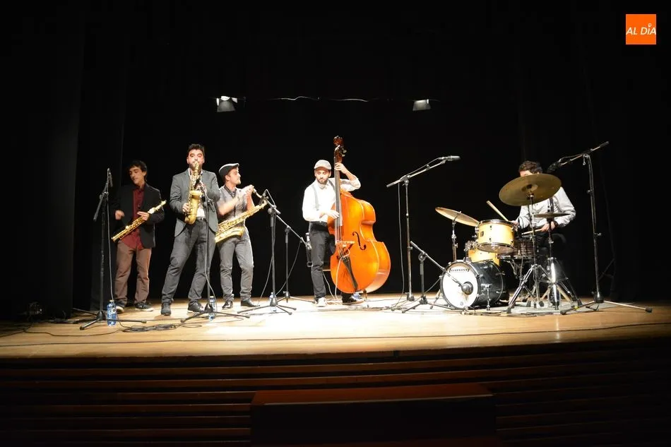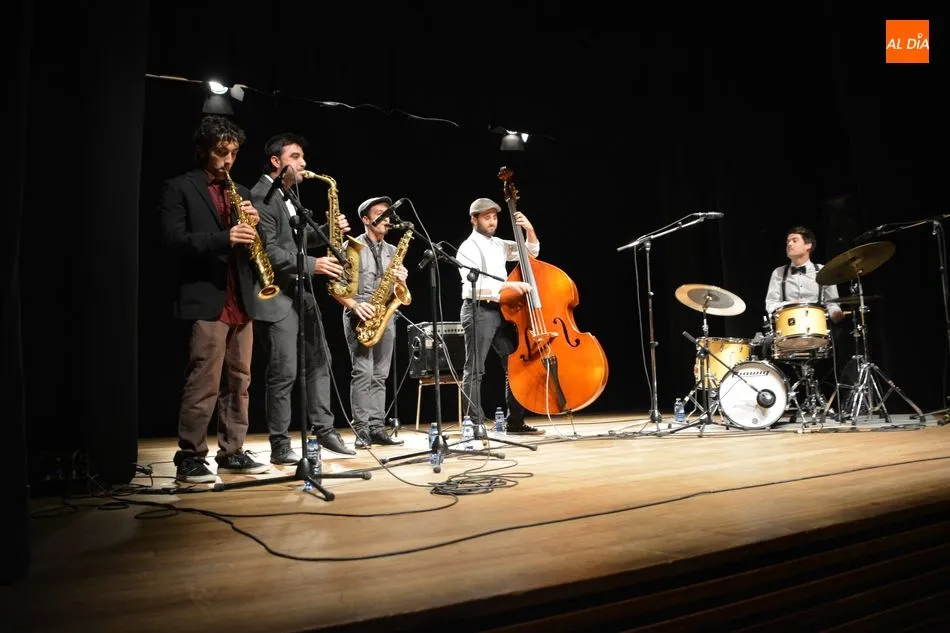 La Biblioteca Torrente Ballester acogía esta tarde el concierto del grupo Berzosax, una explosión de swing, dixie y blues a través del repertorio de su trabajo Vientos de Mar. Berzosax, grupo extremeño, es un quinteto nacido en 2008 que ha ido evolucionando a lo largo de esta década completando un divertido y fresco repertorio característico del swing de los años 20 además de adaptaciones quinteto de swing. Cuentan con un divertido repertorio característico que incluye también versiones de distintos géneros y épocas.