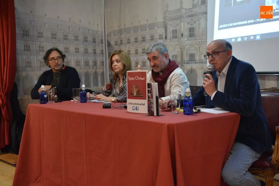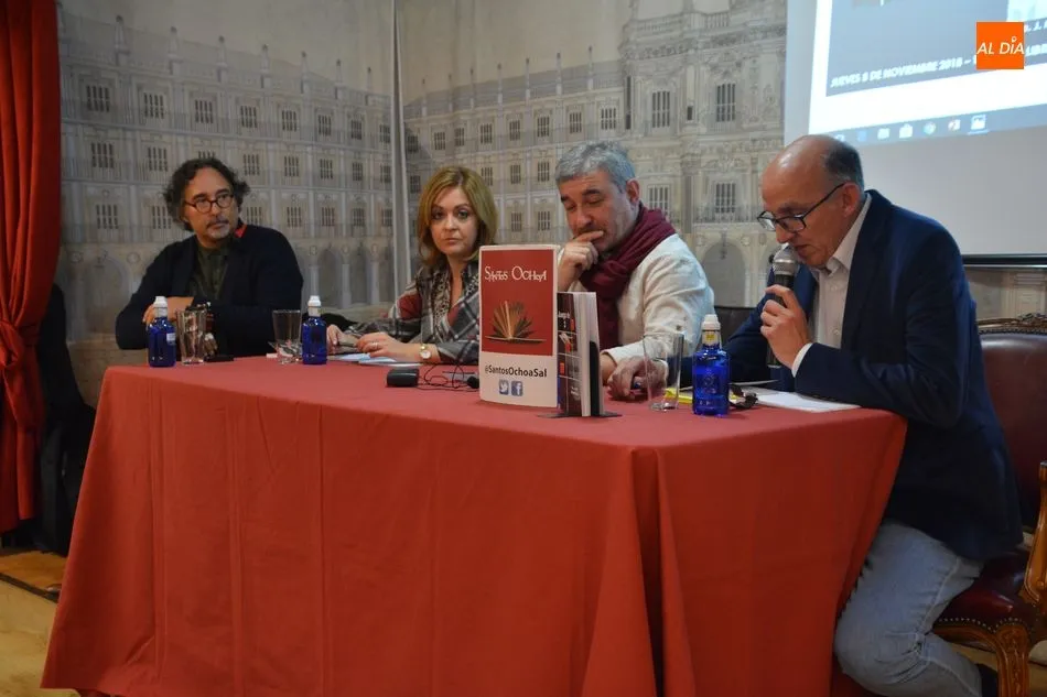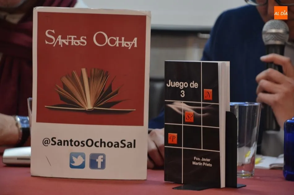 Francisco Javier Martín Prieto presentaba esta tarde en Santos Ochoa ?Juego de 3?. Estamos ante un juego, una partida de ajedrez ?diferente?, aquí en lugar de dos jugadores, tenemos tres; los tres protagonistas. Cada movimiento que haga uno de los jugadores provoca consecuencias en los otros y obliga a que estos realicen otro movimiento, hasta llegar al jaque mate que dé (uno-a) a sus contrincantes.