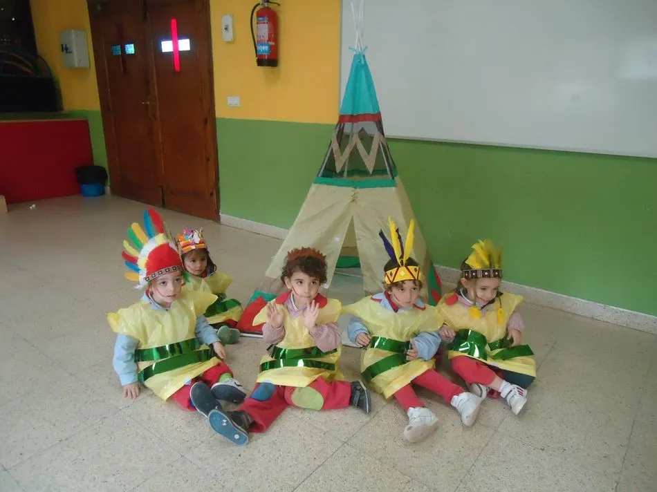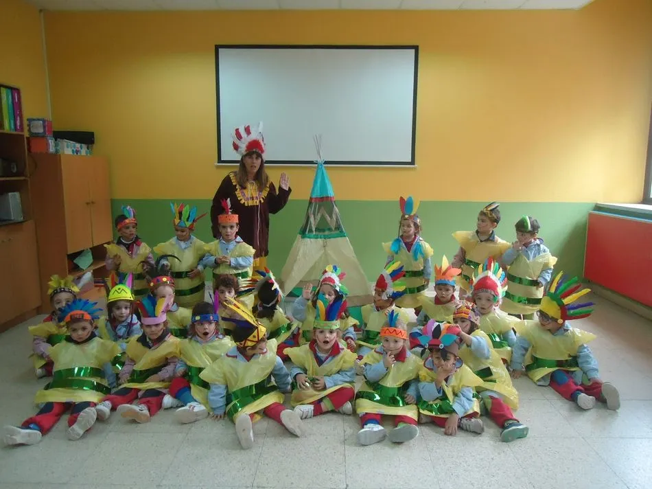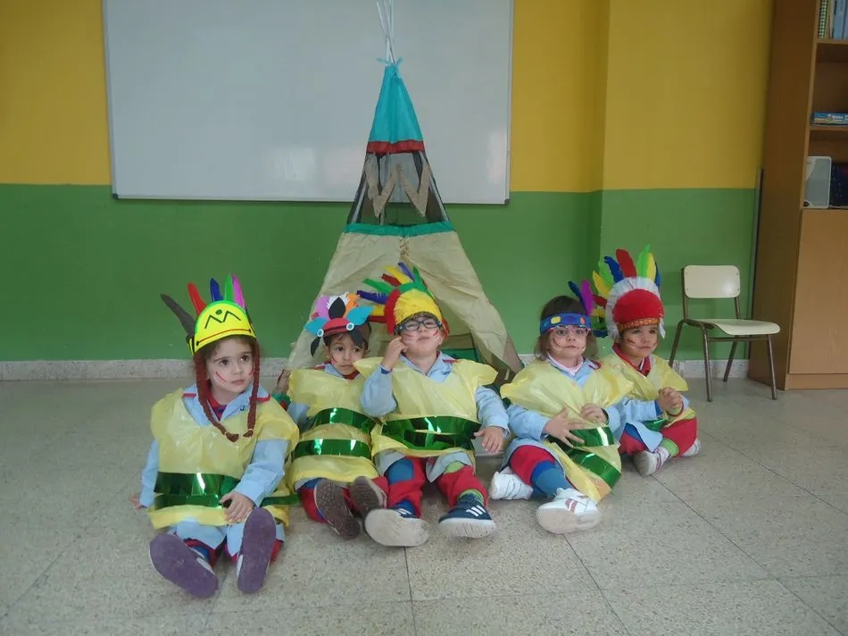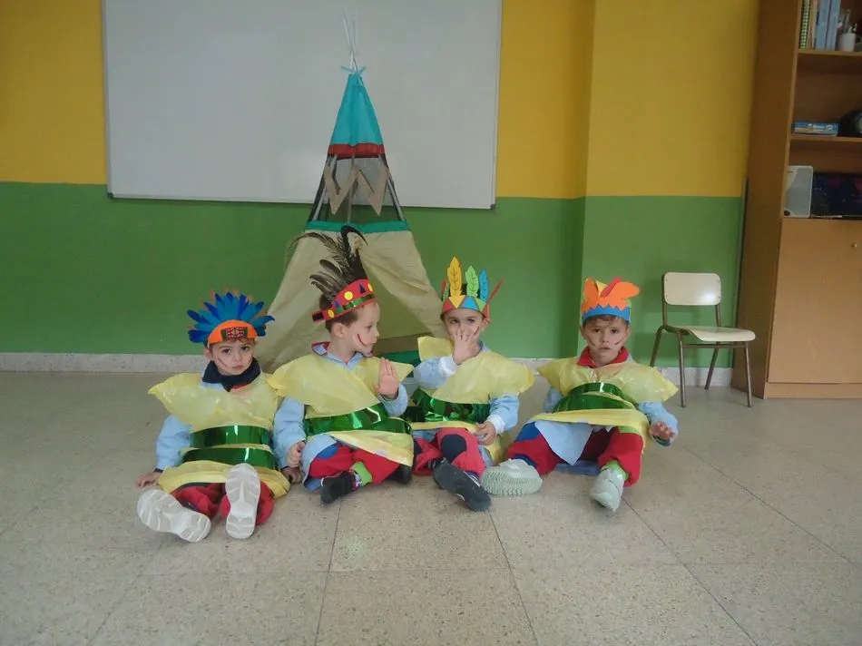 Los alumnos de 3 años del colegio Trinitarios han estado trabajando mucho sobre los indios durante esta semana. Han aprendido cómo eran las casas donde vivían, qué cazaban, cómo se vestían y cómo se comunicaban y un sinfín de cosas más. Esta mañana como colofón al proyecto, han disfrutado vistiéndose de indios, bailando una danza tradicional y metiéndose en un tipi.
