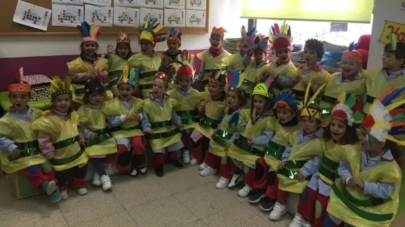 Los niños de tres años del Colegio Trinitarios se divierten como “indios”
