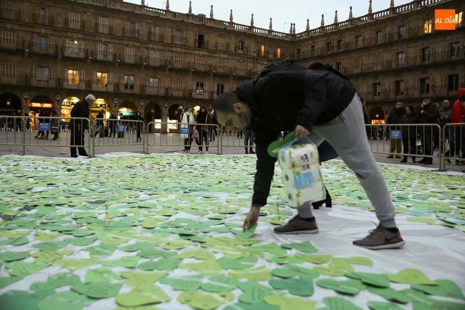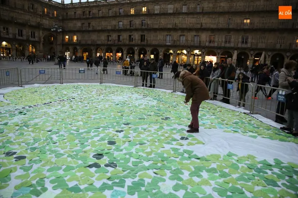 Con motivo del 30 aniversario de AFA Salamanca, la asociación de familiares de personas con Alzehimer, la Plaza Mayor de Salamanca acogía un emotivo acto en el que se ha llenado un corazón gigante con pequeños corazones escritos con frases para personas que padecen la enfermedad. Dichos corazones los han estado realizando en diversas asociaciones, colegios e institutos de la ciudad de Salamanca.