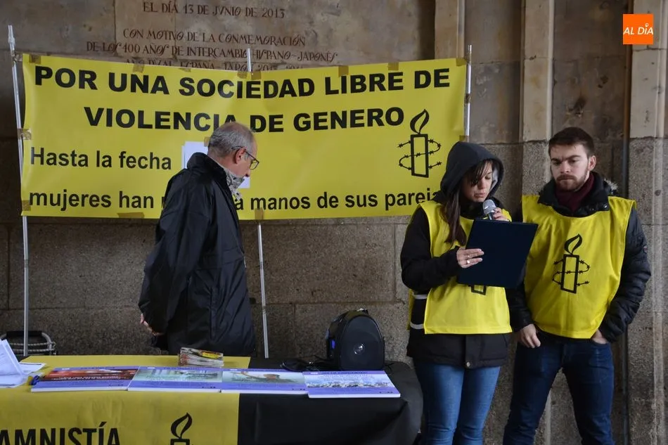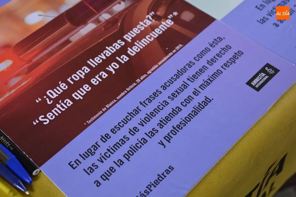 Amnistía Internacional ha acercado este sábado una jornada de concienciación contra los abusos y la violencia sexual, enmarcada en su programa ?No más piedras? . Para ello, ha acercado durante esta mañana una performance en la Plaza Mayor para dar visibilidad a esta realidad y concienciar a la sociedad de la importancia de que las mujeres se sientan arropadas y seguras cuando denuncian.
