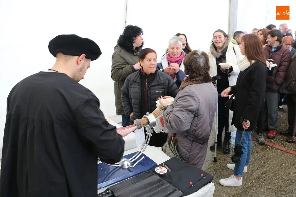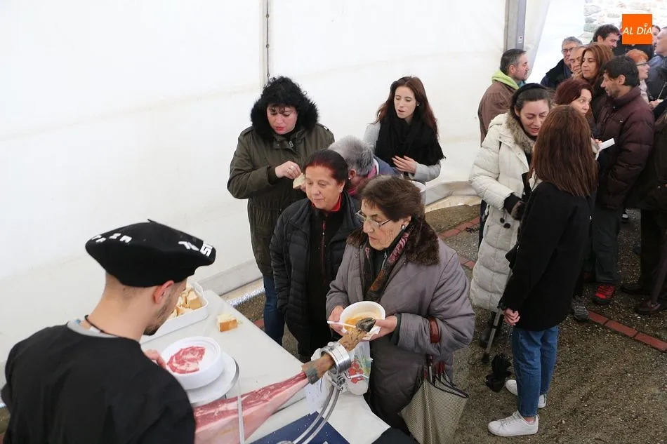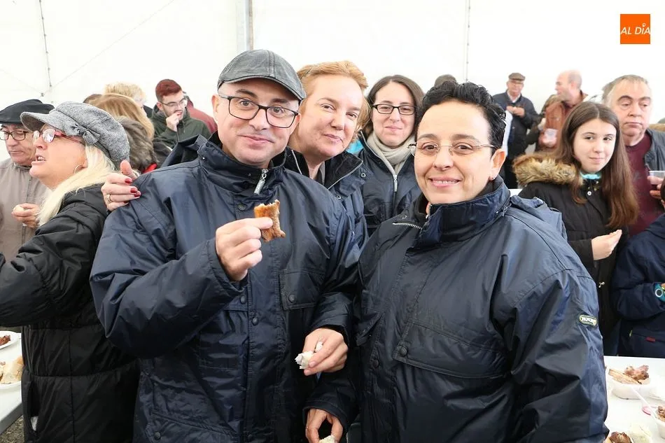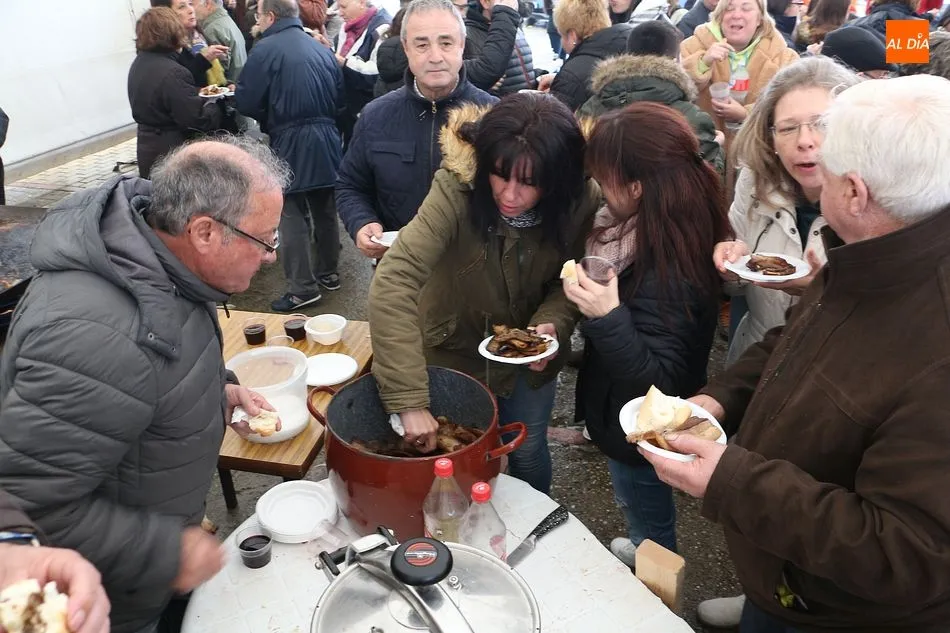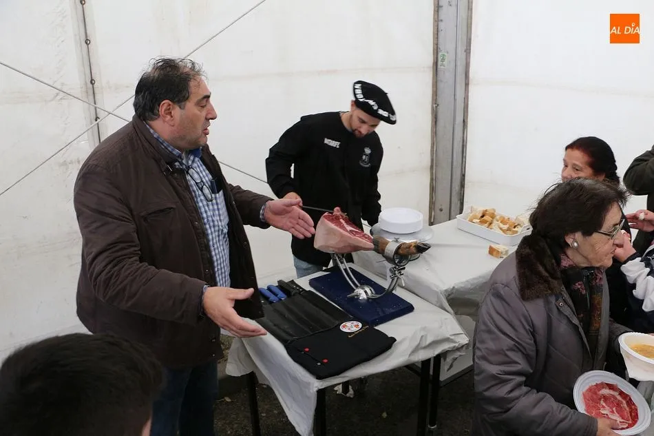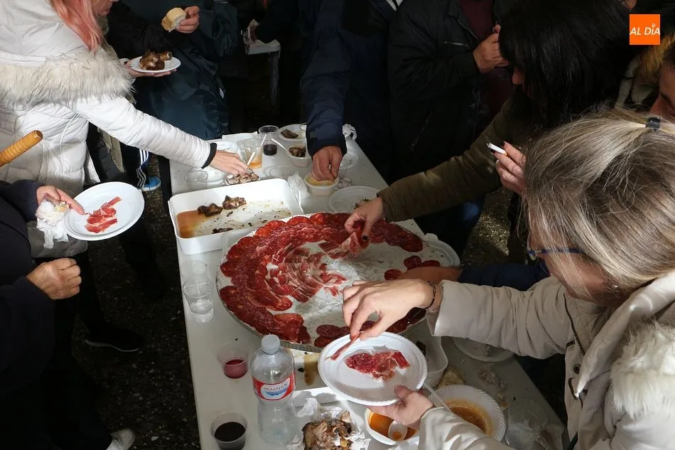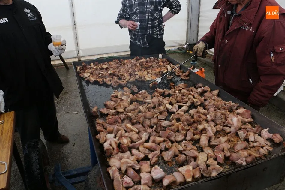 Se comenzó con el despiece del cerdo, que ya llegó sacrificado al lugar. Los presentes arrancaron la mañana con aguardiente y perrunillas, además de la animación de varios actores y del pregonero de la matanza, ya que la cita forma parte del calendario de matanzas de la Diputación de Salamanca. A partir de las dos de la tarde se comenzó a disfrutar de las diversas degustaciones, como panceta, costillas, embutido o jamón ibérico.
