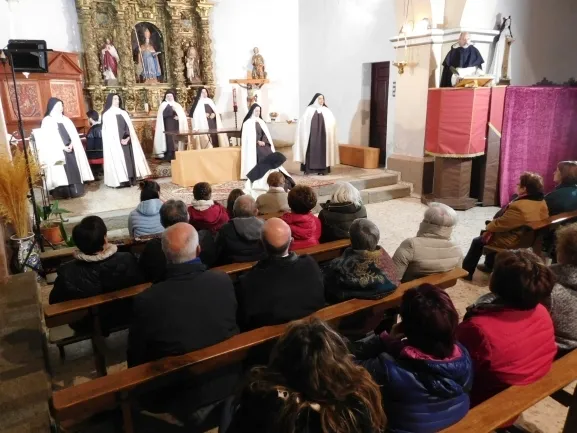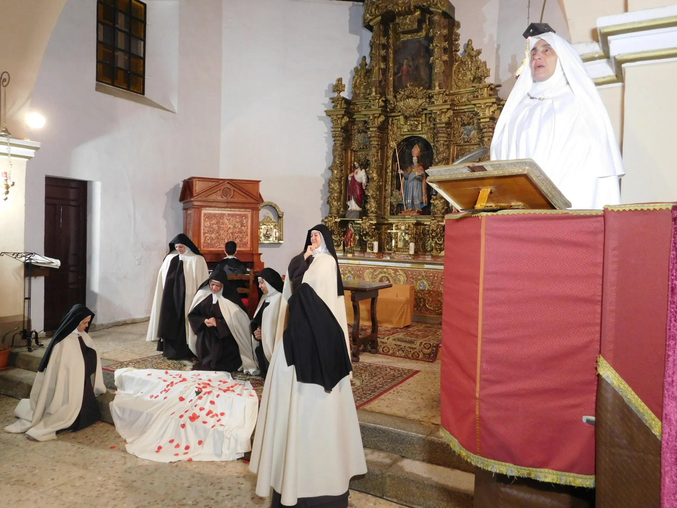 ?Lazarillo de Tormes?, lo ha conseguido. Se ha acercado a la Teresa mujer, y proyectándola a través de los que la rodeaban, amigos o no, la ha entregado en una dimensión diferente, en la que sus cualidades no fueron más que el motor que impulsó su vida por los caminos que ella quiso trazar. Horcajo Medianero, recibió esta particular puesta en escena en el escenario de su iglesia parroquial que celebraba las fiestas de su patrón san Martín, caballero que también supo compartir con los más desheredados, como la seductora, inteligente, libre y profunda Teresa supo hacer en su siglo y dejarlo como legado a los posteriores. La música renacentista de Salinas vuelve a salir de unos dedos que acarician el teclado de un órgano, que con sus notas se balancea junto a las palabras de un guión sucinto a la vez que preciso, no exento de mordacidad, frescura a la vez que sencillez y elegancia, y que junto a las que la maestra dijera, hace que sus hermanas carmelitas hagan de la narración de su vida y obra el conjunto perfecto que conduce a lo más profundo de su espiritualidad. La interpretación firme y rotunda que lleva a cabo el actor que representa al dominico, esencia del poder de la Inquisición de la época, es el contrapunto que completa una sinfonía de reflexiones, debates, lirismo, lecturas y relatos que dentro de unos preciosos cuadros escénicos construyen el conjunto dramático.