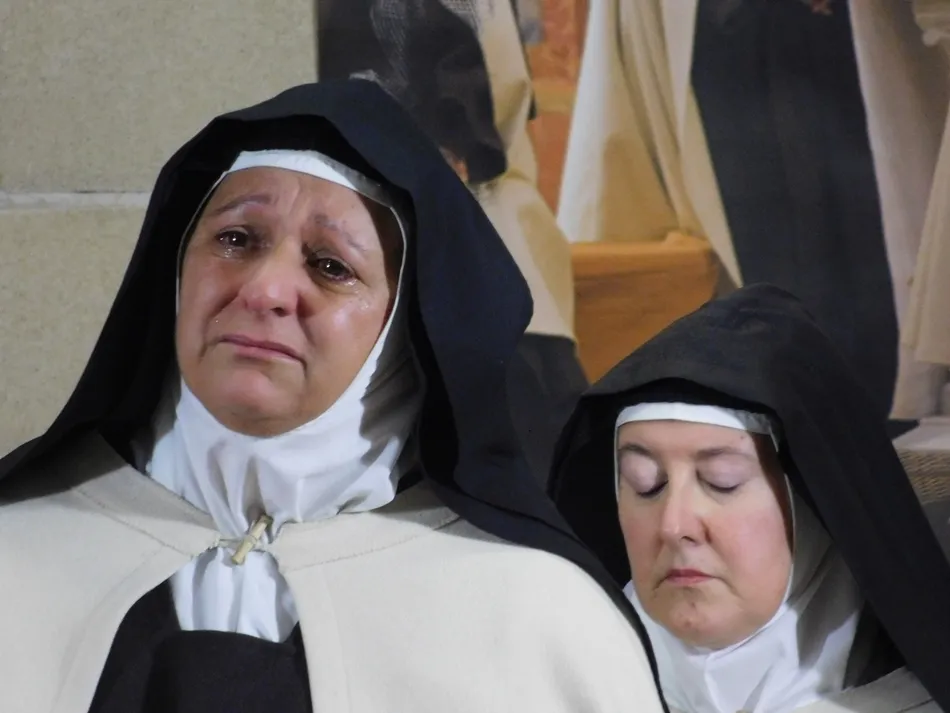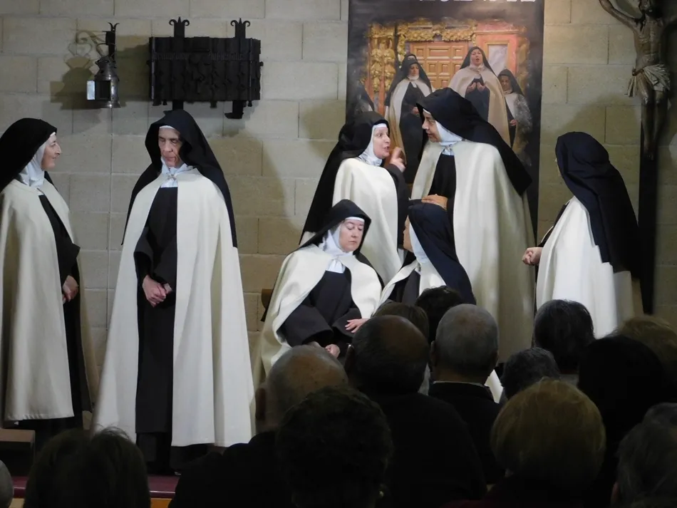 Sin embargo la gran riqueza en esta tarde llegó de la mano de la gente de un barrio humilde cuya parroquia de apenas 45 años estaba llena de otro tipo de valor, el humano, el que emana de gente sencilla que ofrece lo que tiene para compartir juntos. Una construcción que antes albergó una escuela, y cuya guardería aledaña recuerda la importancia de la educación en cuerpo y alma como la que tuvo Teresa de Jesús. Nada mas cercano al espíritu de la carmelita, tan bien dibujada frente a estos espectadores de la mano de unas actrices que bajo sus hábitos de paño de estameña, consiguen la magia de que los asistentes se trasladen con ellas al ambiente del convento de esta Orden de Descalzas de Alba de Tormes, donde su madre agoniza. Es otoño también, pero allá por el siglo XVI, y un padre dominico, encarnado en un actor que sobrecoge a las hermanas, recuerda el cerrado, varonil e inquisitorial mundo, en el que una monja diferente, como lo era Teresa, no tenía cabida.