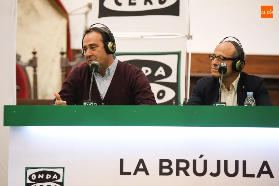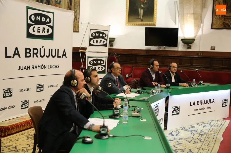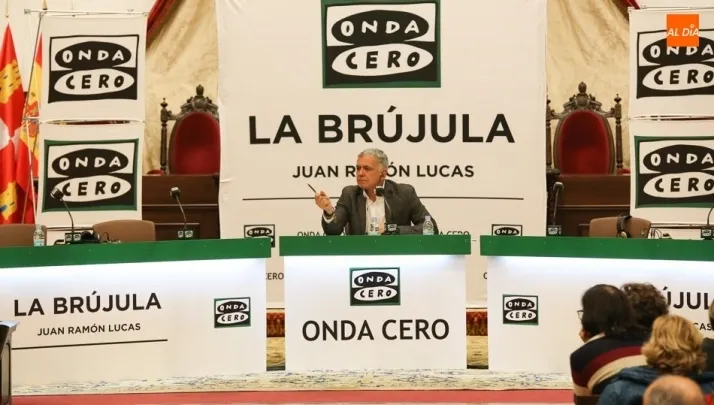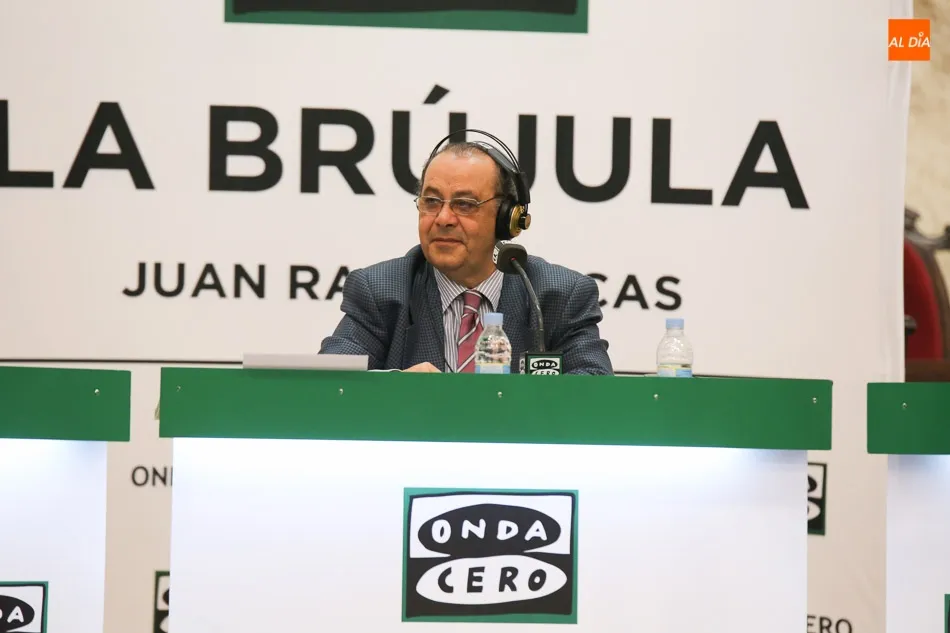 Juan Ramón Lucas ha desembarcado este martes en Salamanca para ofrecer la emisión de su programa de radio, ?La Brújula?, de Onda Cero, para todos los salmantinos en el Paraninfo de la Universidad de Salamanca.