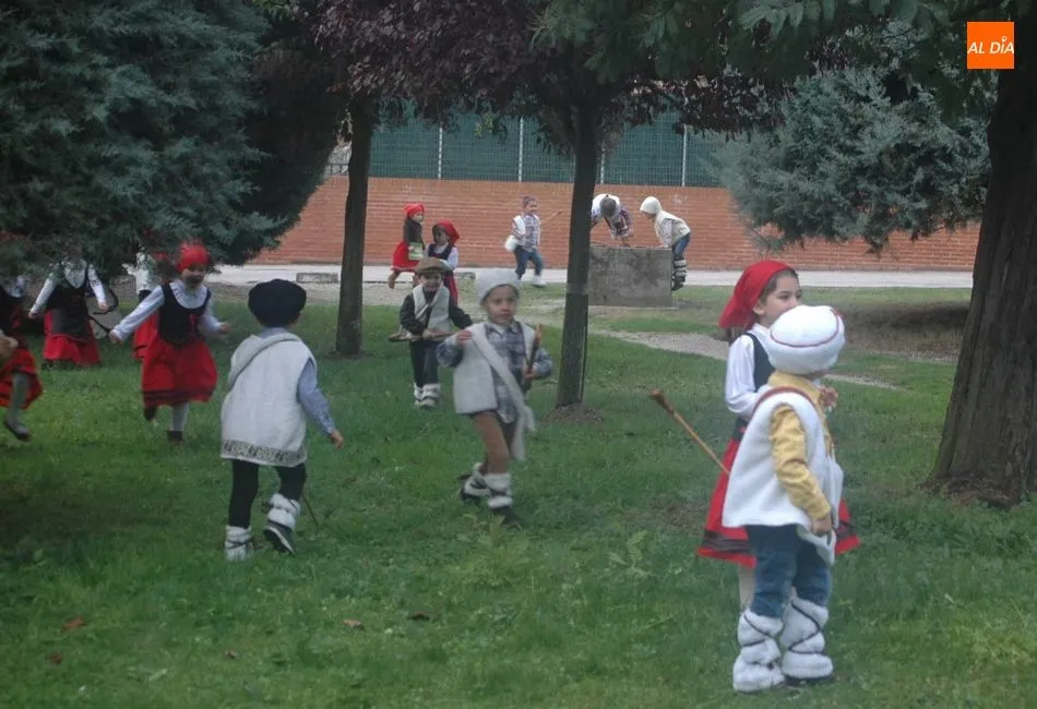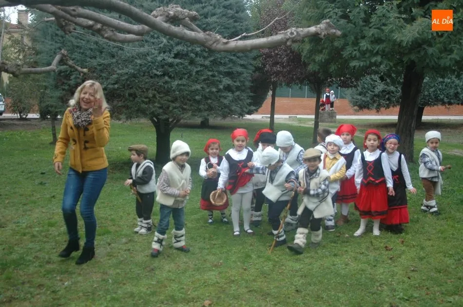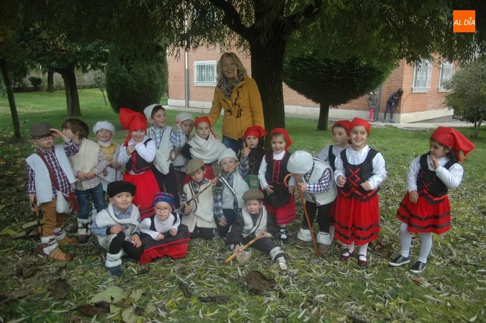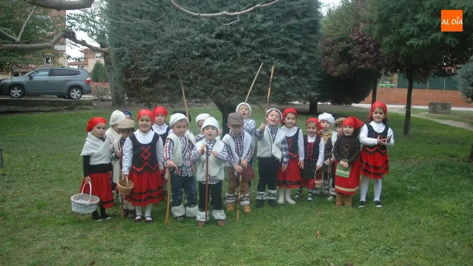 Una veintena de niños y niñas posaron vestidos de pastorcillos y pastorcillas en los jardines de la urbanización La Gudina