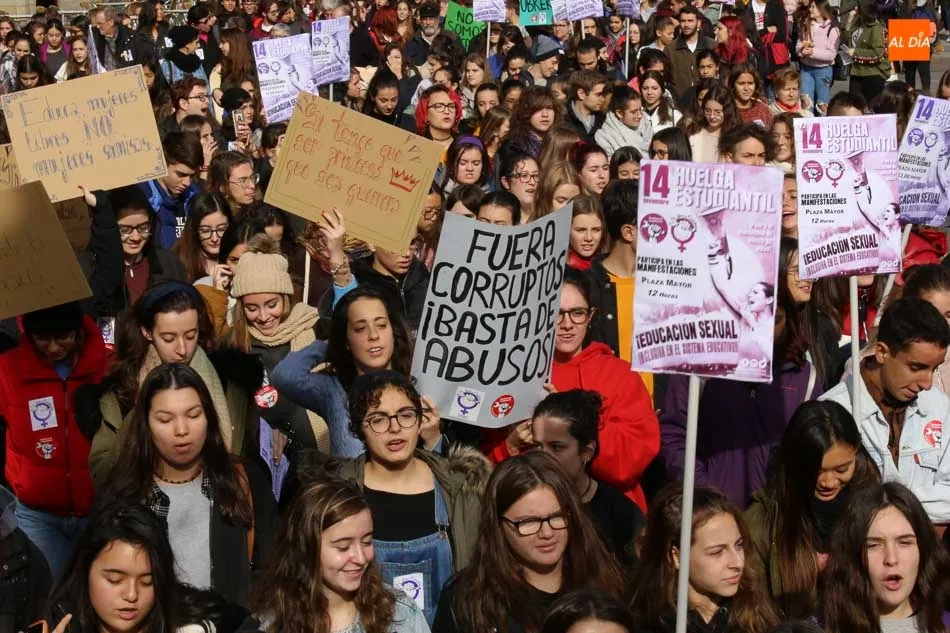 Convocados por el Sindicato de Estudiantes y la plataforma feminista Libres y Combativas, y con el apoyo del colectivo Yay@Gaitas Salamanca, decenas de estudiantes han secundado la huelga y han salido a la calle para exigir también al Gobierno de Pedro Sánchez la eliminación de los reglamentos internos de los centros de estudio cualquier referencia machista y represiva. ?Queremos denunciar la situación que se está viviendo en todos los centros de España y que, a pesar de tener un Gobierno que se considera el más feminista de la historia, solo lanza brindis al sol sin hacer nada?, han criticado los organizadores.