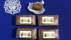 Agentes de Policía Nacional han detenido a un varón de 34 años, como presunto autor de un delito contra la salud pública, por tenencia de sustancias estupefacientes destinadas al tráfico ilícito, tras intervenirle en un cacheo de seguridad cinco envoltorios de resina de hachís que llevaba en distintos bolsillos. En total, 423 gramos de droga.