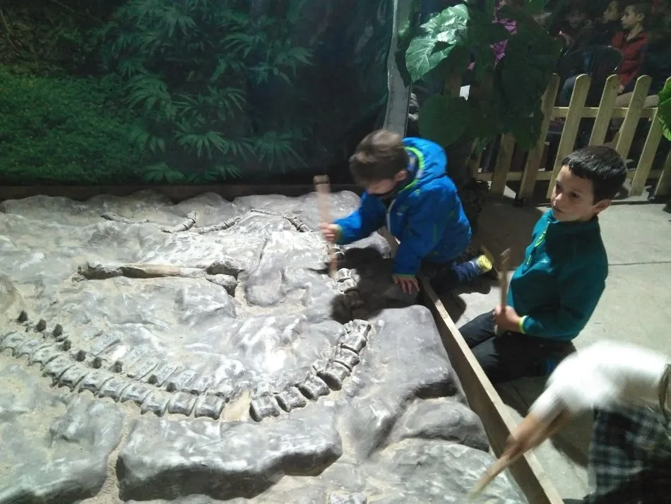 Los la alumnos de los colegios San Blas, Carmen Martín Gaite y Miguel Hernández disfrutaron de los dinosaurios animados en el aparcamiento de El Tormes