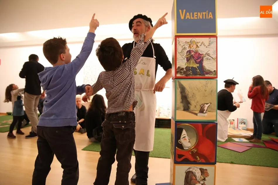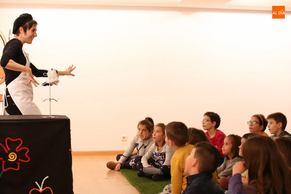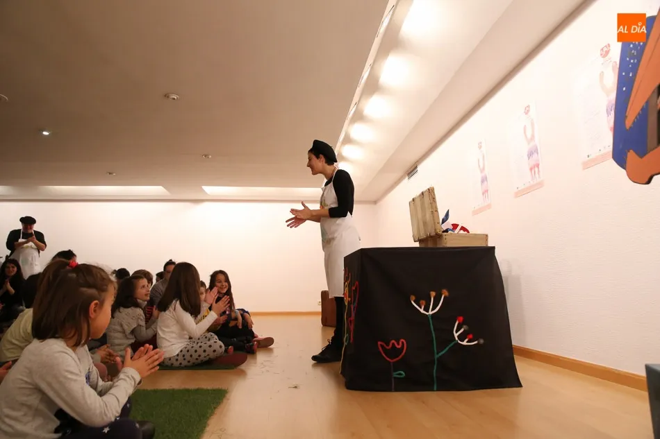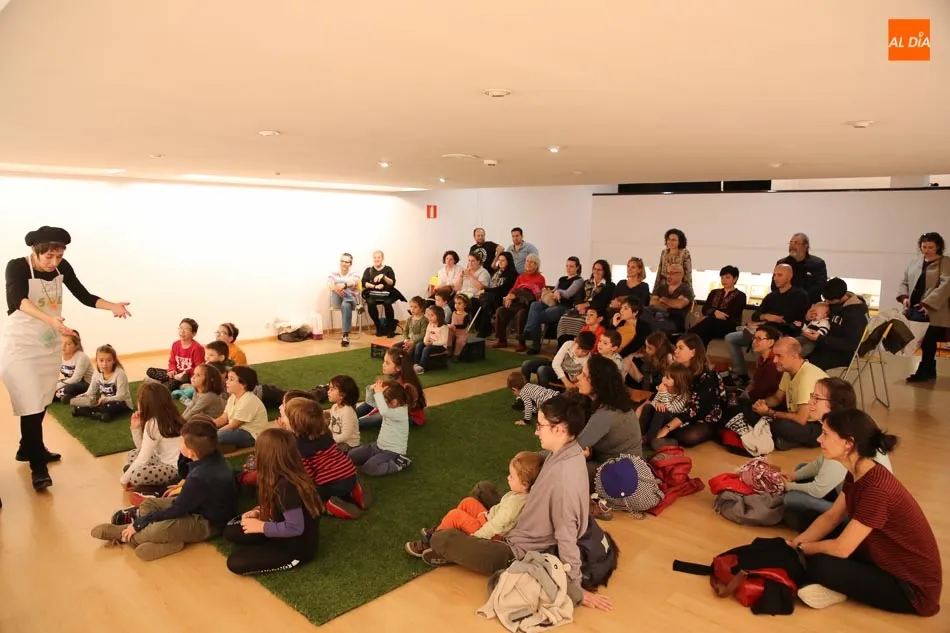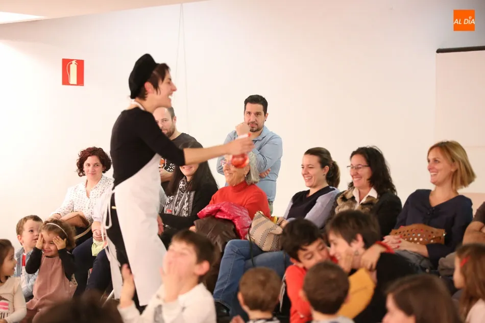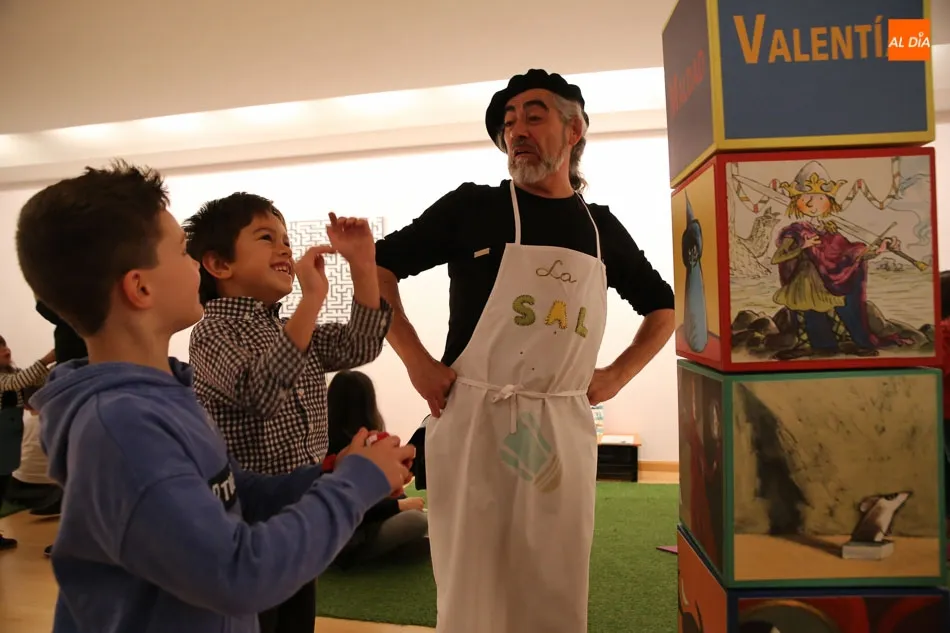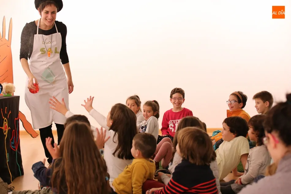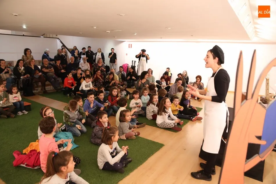 Una de las actividades se ha desarrollado esta tarde en la sala de exposiciones del Palacio de Garcigrande, donde los más pequeños y también los mayores han disfrutado de las historias contadas por los vendedores de sal Josetxu Morán, Fernando Saldaña, Noelia Carioca y Raúl Vacas, así como del teatro con ?Cuentos asquerosos para niños poco escrupulosos?.