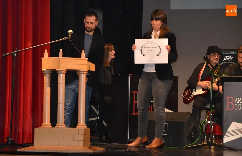 Y por último, el cortometraje Distintos se hizo con la mención especial entregada por los alumnos de Secundaria y 1º de Bachillerato, y con la novedosa mención especial Roberto Báez. Tal y como explicó Daniel Gómez, el FICEE ha decidido crear este galardón para homenajear al que fuera responsable del Cine Juventud, Roberto Báez, fallecido en diciembre del año pasado. Como señaló Daniel Gómez, ?ir al Cine Juventud ya no es lo mismo?. Al escenario subió para simbolizar la recogida del premio su viuda, Soraya.