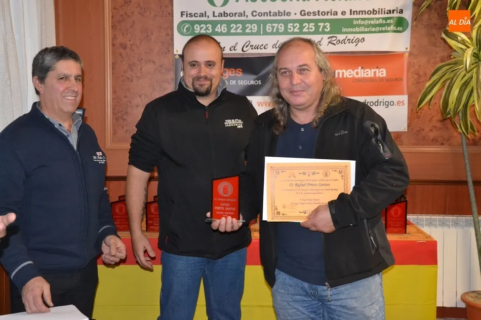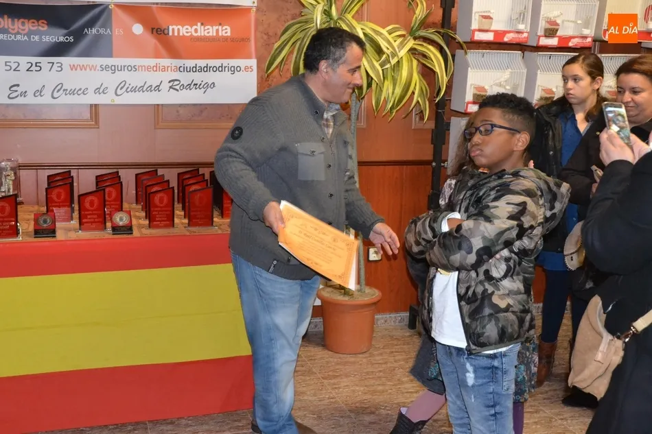 Hasta allí se acercaron en la tarde del domingo a recoger sus pájaros el medio centenar de criadores participantes, llegados de Burgos, León, Zamora, Extremadura, Portugal, y varios puntos de Salamanca, incluidos por supuesto los miembros de la Asociación Mirobrigense de esta disciplina.