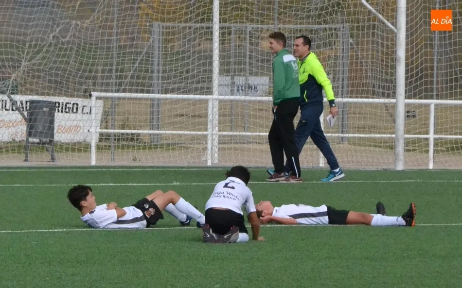 El Alevín A del Ciudad Rodrigo perdió en la mañana del sábado en los Campos de Toñete frente al Amigos de Cabrerizos de la forma más cruel posible: en el tiempo de descuento, en una acción de saque de esquina donde los jugadores mirobrigenses reclamaron falta sobre su portero, Pablo Bernal.