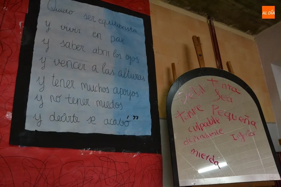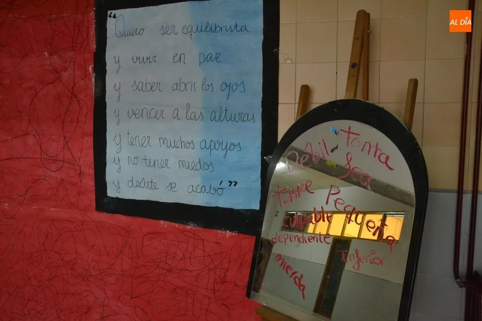 Desde la semana pasada, el hall del IES Tierra de Ciudad Rodrigo se ha ido transformando en la habitación de una mujer maltratada en el marco de las actividades preparadas por el centro para sumarse a la conmemoración del Día Internacional para la Eliminación de la Violencia hacia las Mujeres que aparece en el calendario el próximo domingo 25.