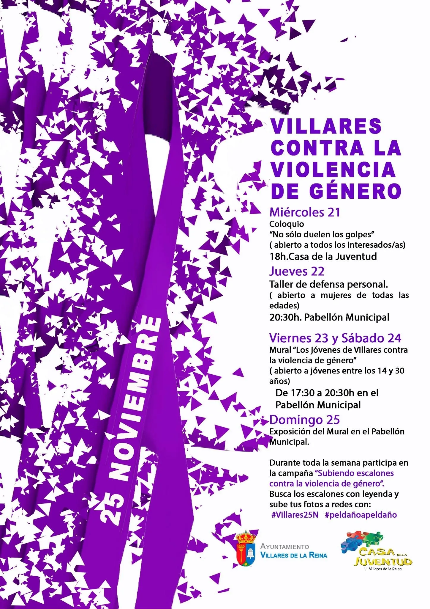 El próximo miércoles 21 de noviembre tendrá lugar la charla coloquio ?No sólo duelen los golpes?, a las 18.00 horas, en la Casa de la Juventud. Las jornadas continuarán el jueves 22 de noviembre hasta el domingo, con eventos en el Centro de Ocio y Deporte, tales como talleres gratuitos de defensa personal, creación y exhibición de mural artístico de los jóvenes del municipio contra la violencia. También se realizará una campaña en redes sociales en la que se participará con las fotografías de los usuarios.